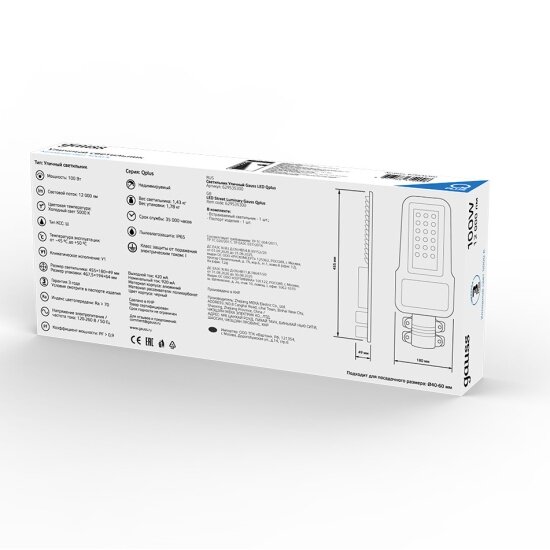 Купить Консольный светильник Gauss Qplus 100W 12000lm 5000K 120-260V IP65 455*180*49мм черный КСС "Ш" LED 1/4
