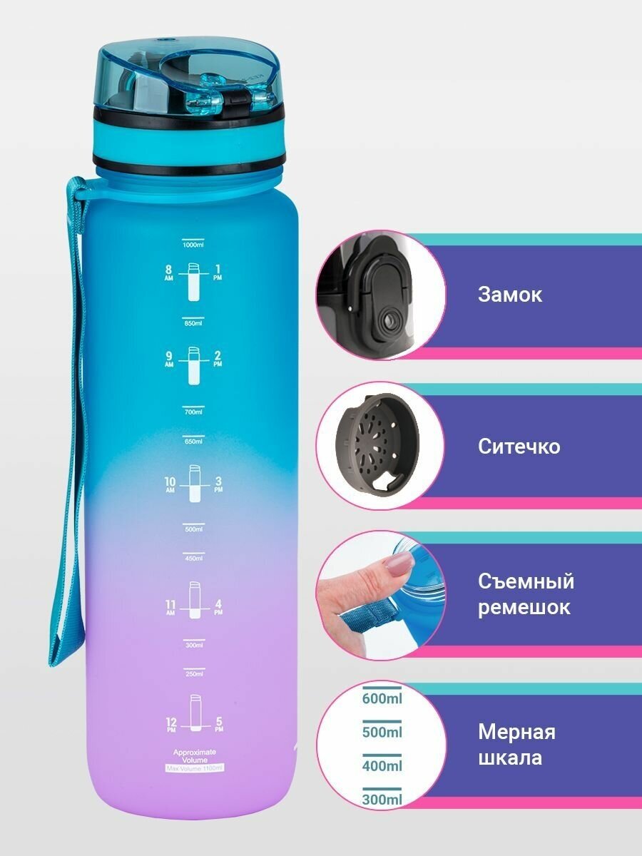 Бутылка для воды спортивная Uzspace 1000 мл фиолетово-голубой