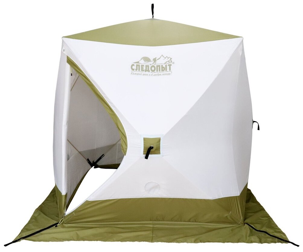 Палатка зимняя куб следопыт Premium, 2,1х2,1 м, 4-х местная, 3 слоя, цвет белый/олива