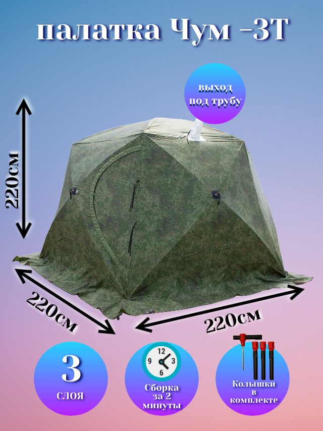 Палатка для зимней рыбалки "Стэк" ЧУМ 3Т трехслойная интересное: