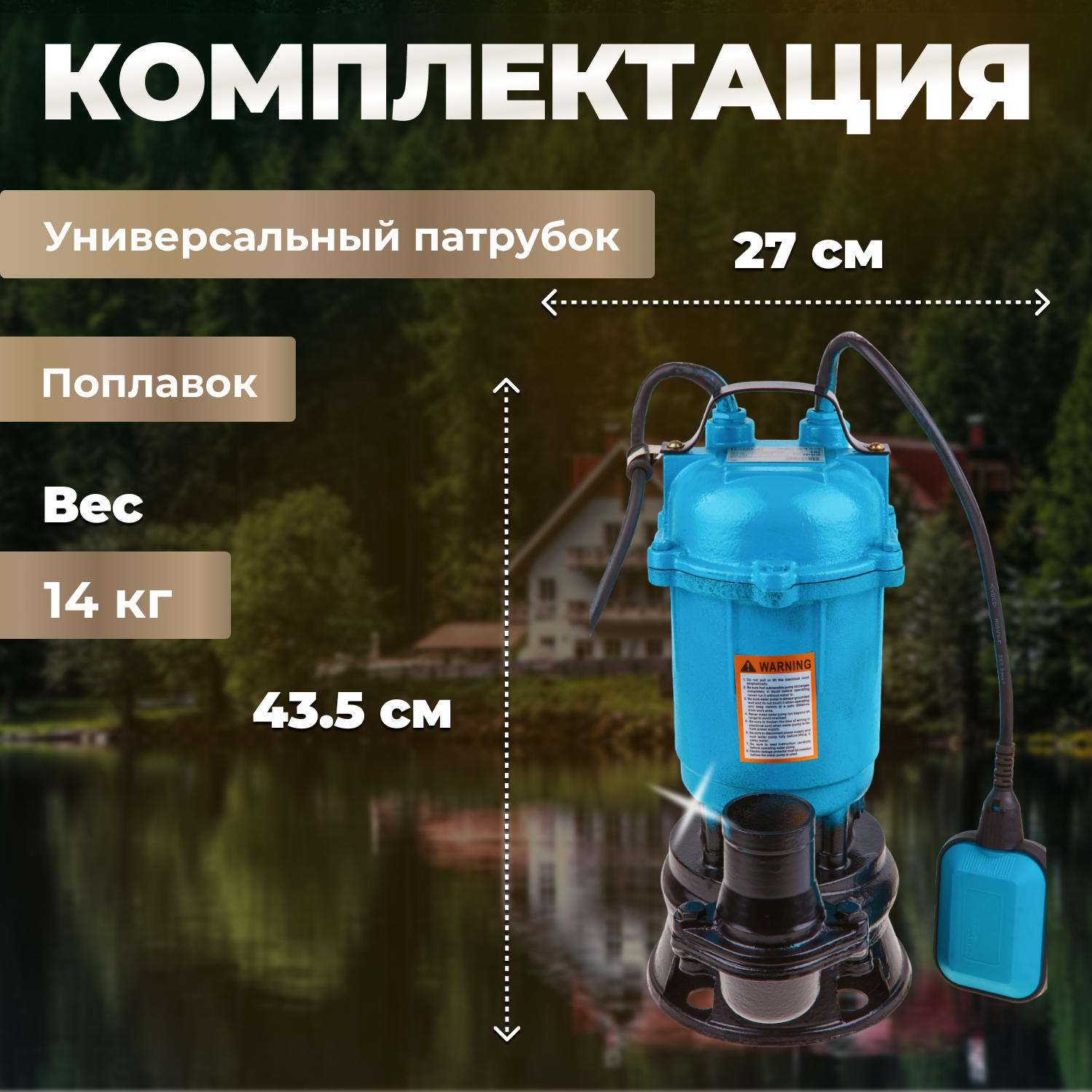 Дренажный насос для грязной воды DGM BP-A110,1500 Вт, 15000 л/ч