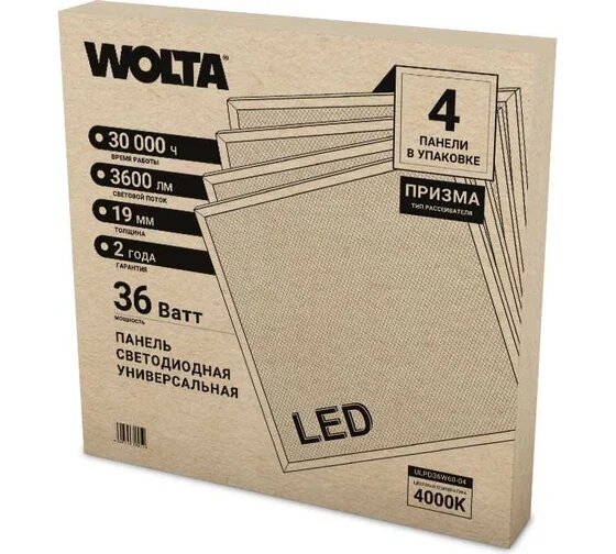 Купить Wolta Панель светодиодная универсальная 36Вт , 4000К Дневной свет , IP20 Призма , ультратонкая ULPD36W60-04