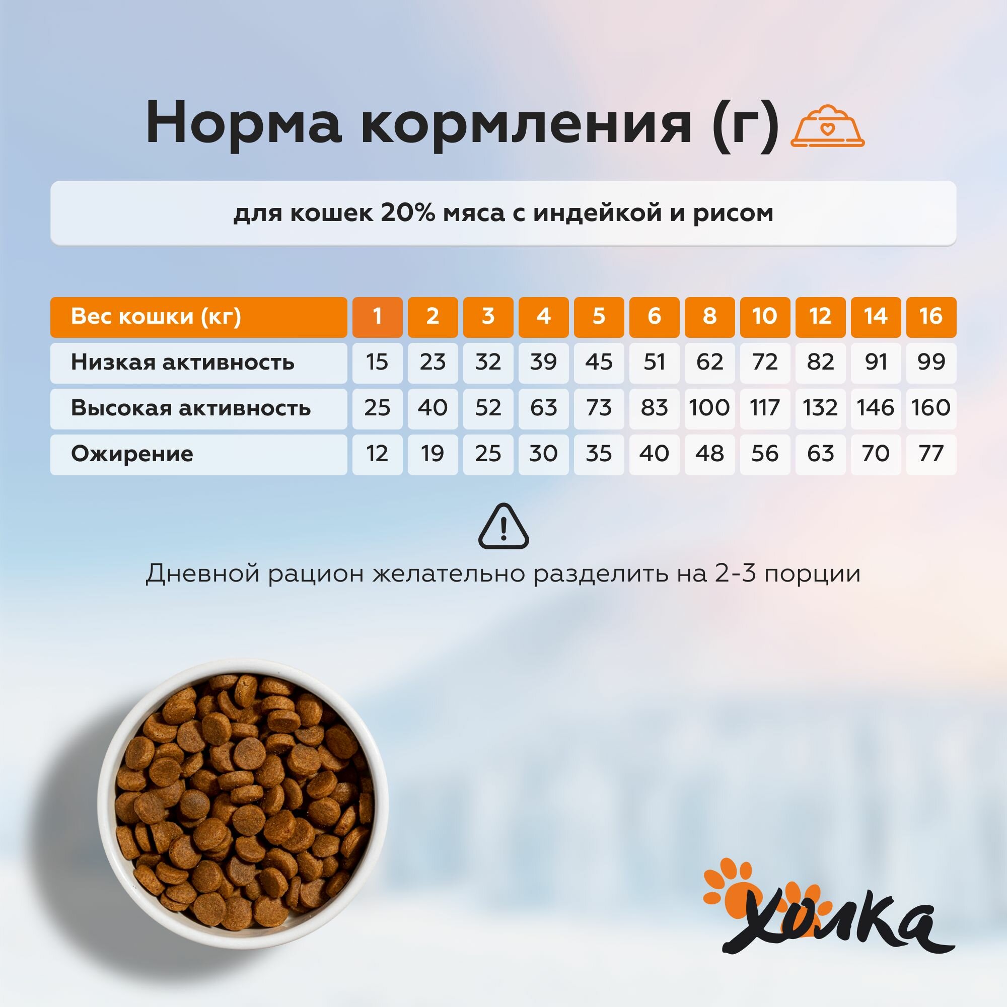 Холка Сухой корм для взрослых кошек, индейка с рисом (20% мяса), 1.5кг