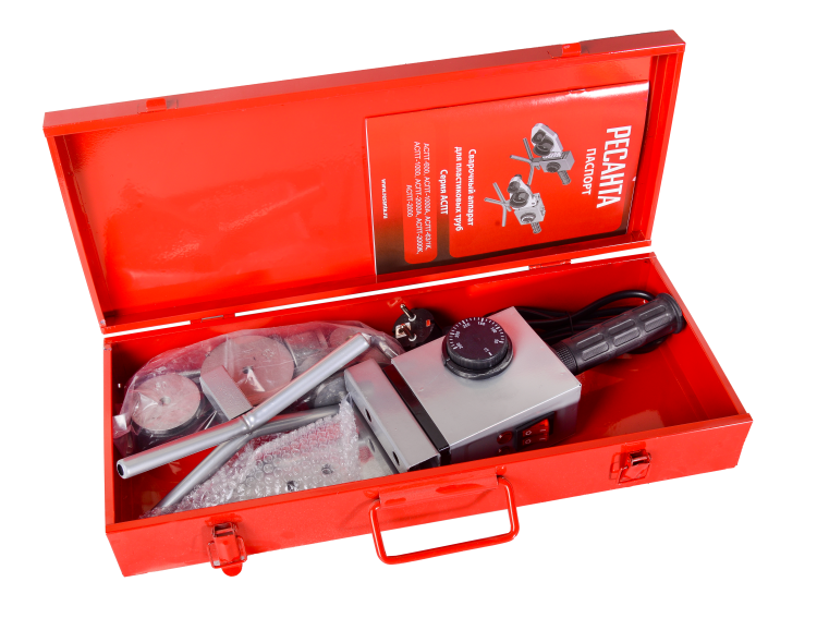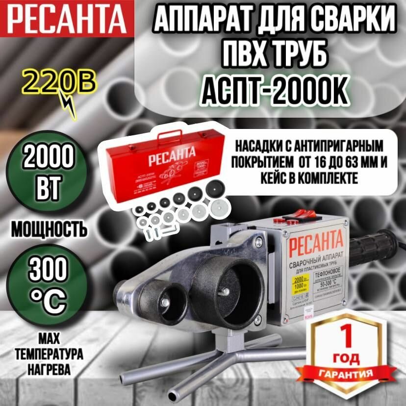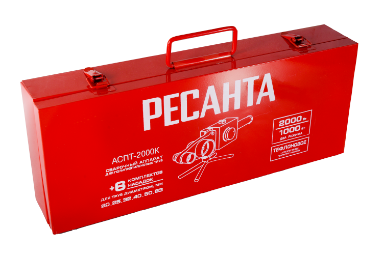 Аппарат для сварки ПВХ труб АСПТ-2000К Ресанта, 2 кВт, 6 насадок (20,25,32,40,50,63)