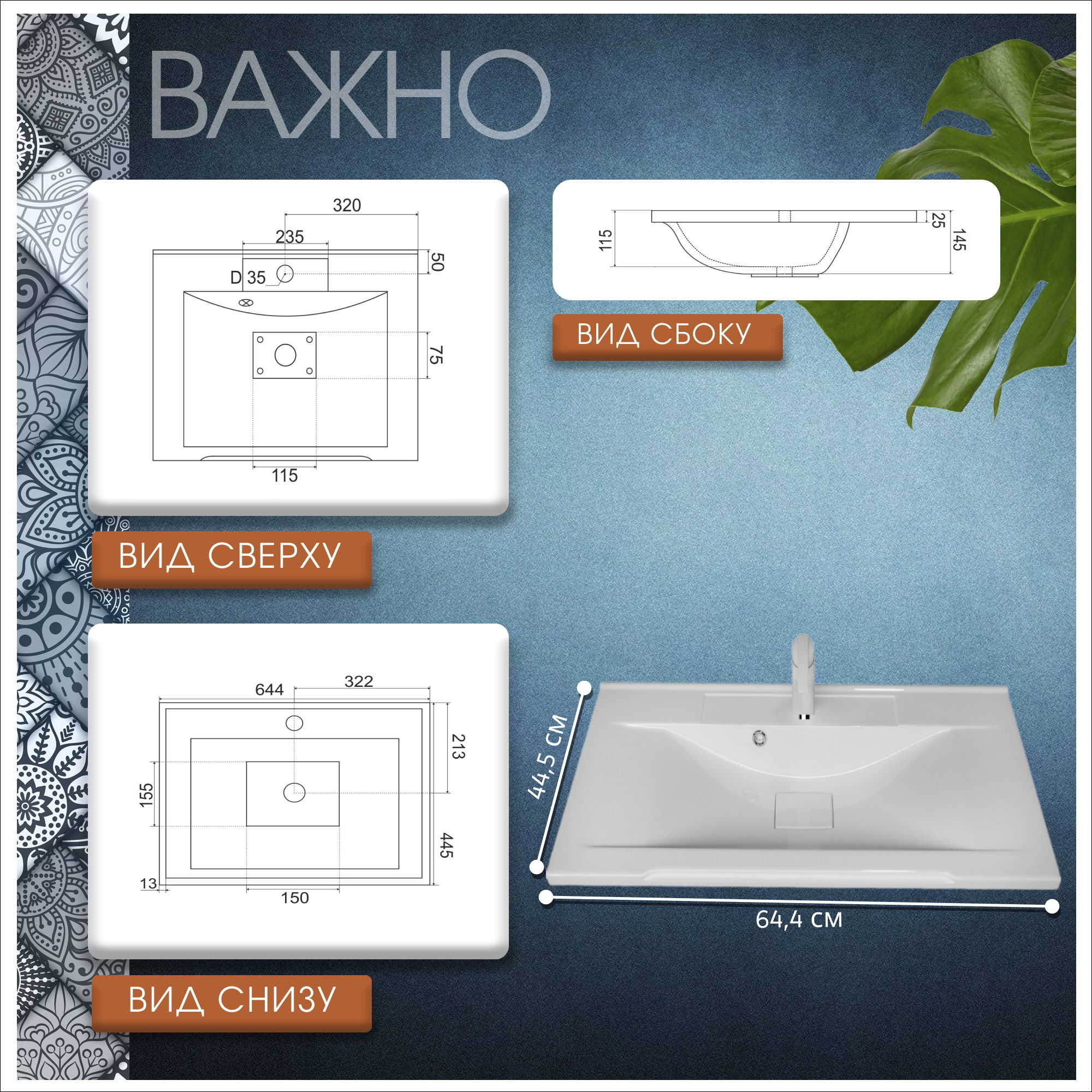 Раковина белая мебельная Комфорт 65 с переливом 650х445 интересное: