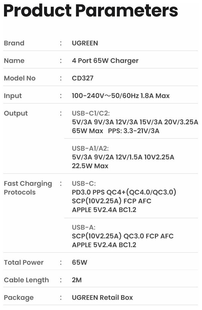 Ugreen CD327 Nexode 2xUSB-A+2xUSB-C 65W Black 90747 .