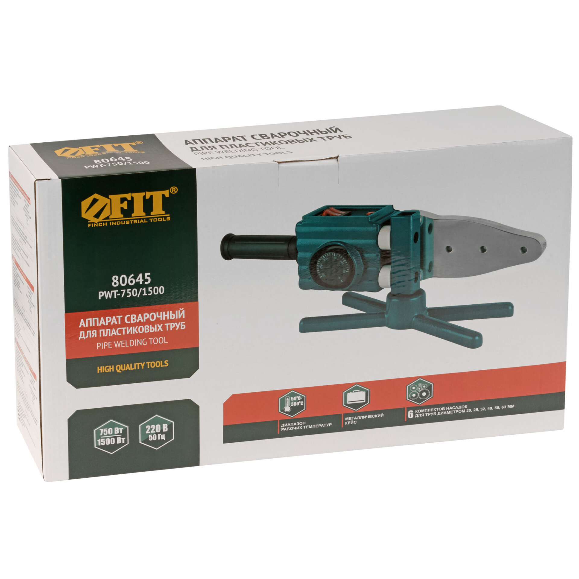 Купить Аппарат сварочный для пластиковых труб 750/1500 Вт; 50-300 °C; диаметры труб 20-63 мм; металл. кейс, FIT 80645 (1 шт.)