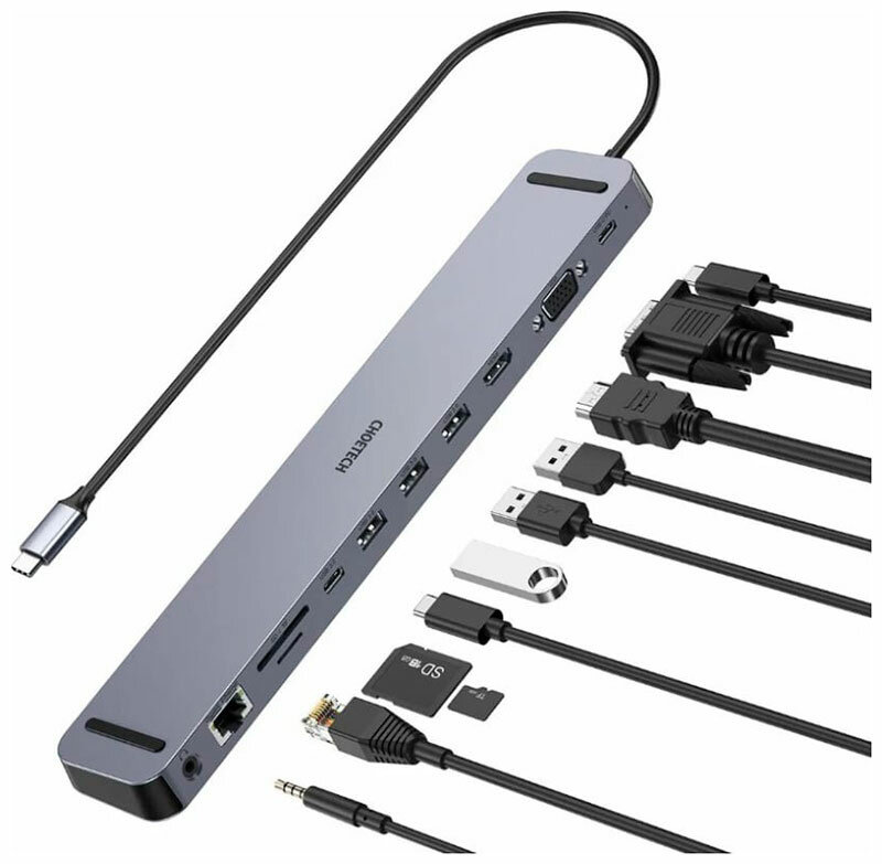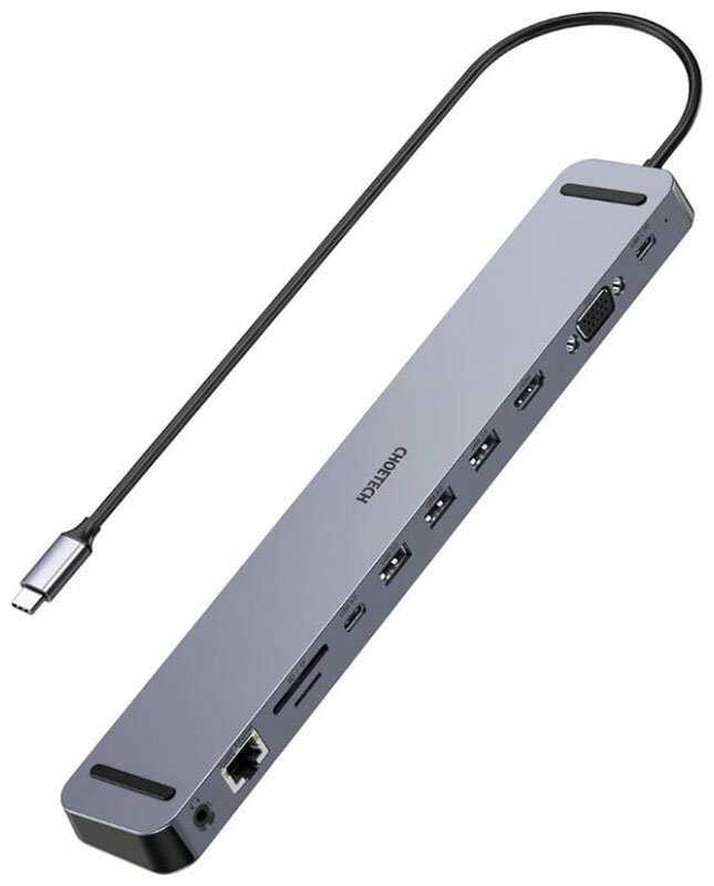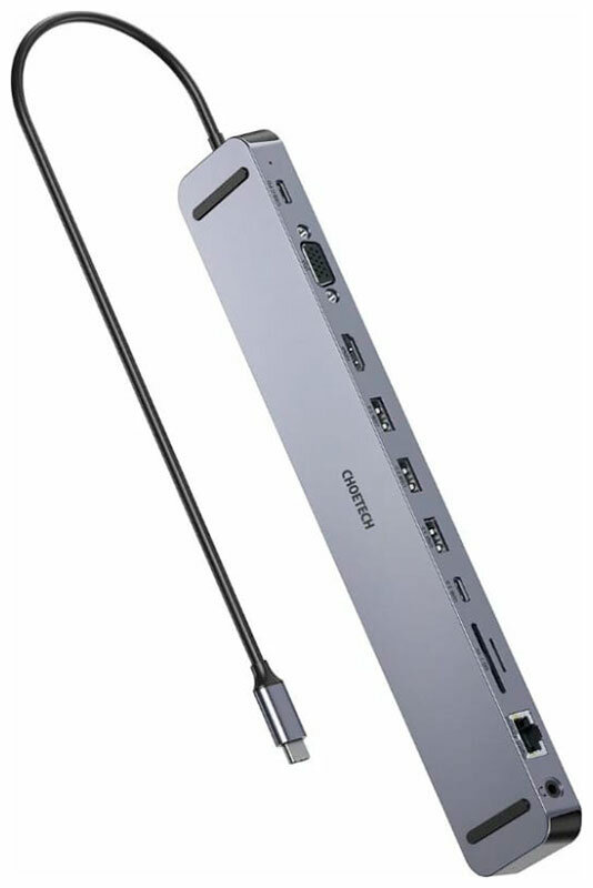 Купить USB-концентратор (хаб) Choetech 11 в 1, 4 x USB 3.0, 1 x USB-C PD, 1 x 4K HDMI, 1 x VGA, 1 x RJ45, 1 x jack 35 mm, 2 x SD/Micro SD (HUB-M20-GY)