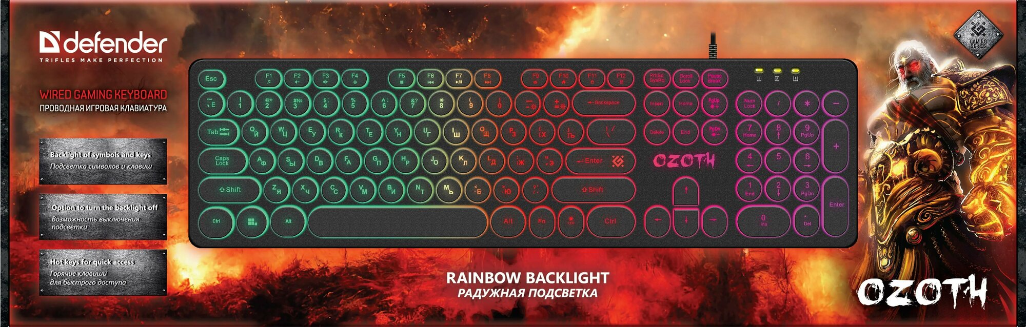 Клавиатура Defender Red GK-116 RU, радужная подсветка,61кнопка, игровая