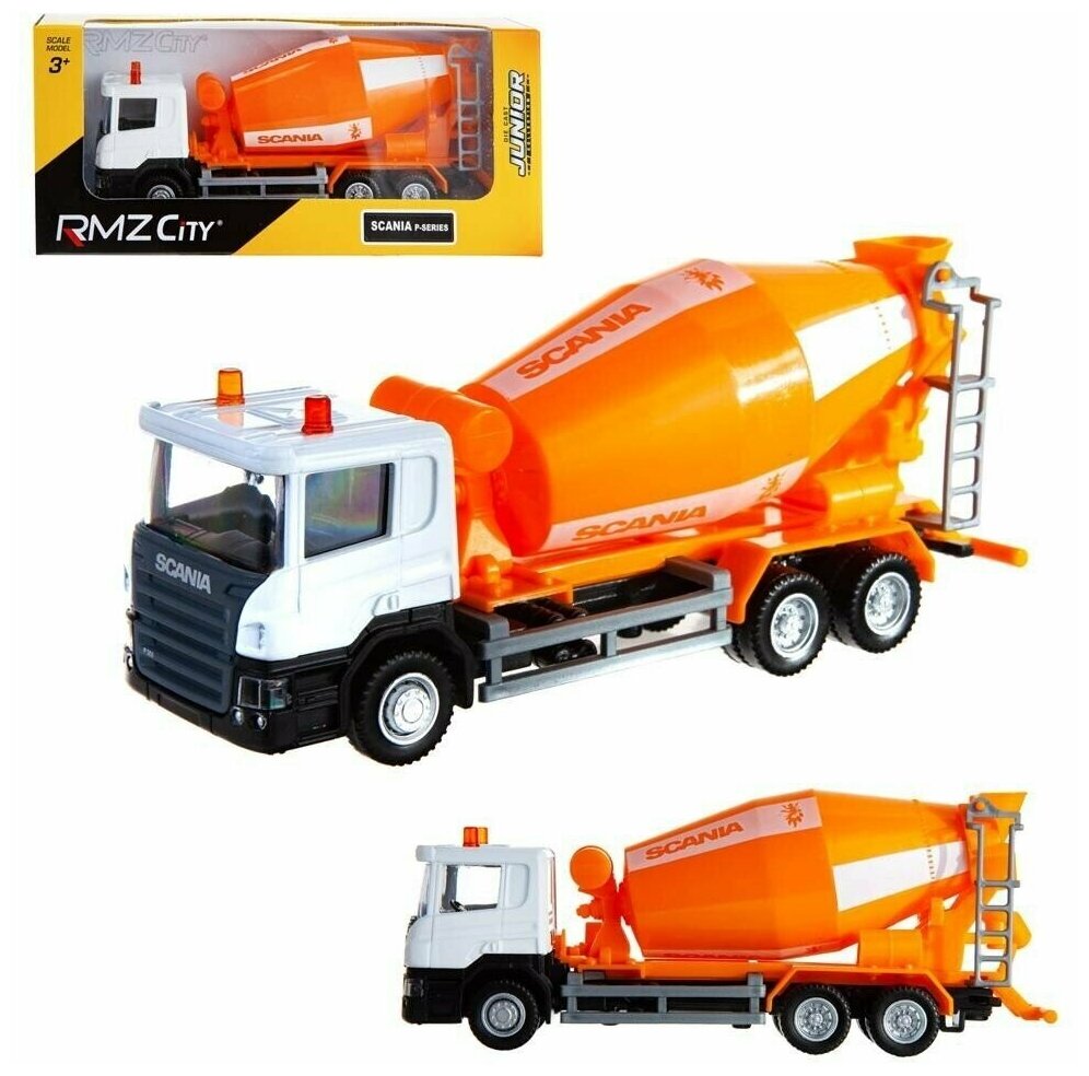 Машина металлическая RMZ City 1:64 Бетономешалка Scania, без механизмов, цвет оранжевый, 18.8 x 5.17 x 9 см - Uni Fortune [144005]
