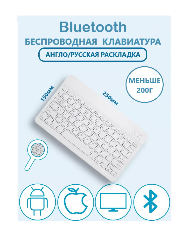 Купить Мини Беспроводная белая Bluetooth русско-английская клавиатура для iPad, телефона, планшета/ совместимость Android/Windows/IOS (без мышки)