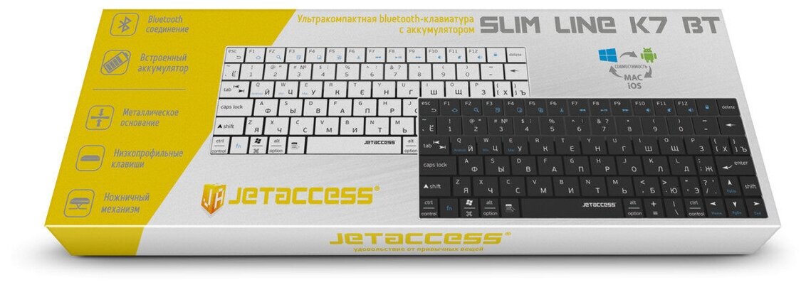 Ультракомпактная bluetooth-клавиатура со встроенным аккумулятором (Lithium 250mAh) JETACCESS SLIM LINE K7 BT, черный