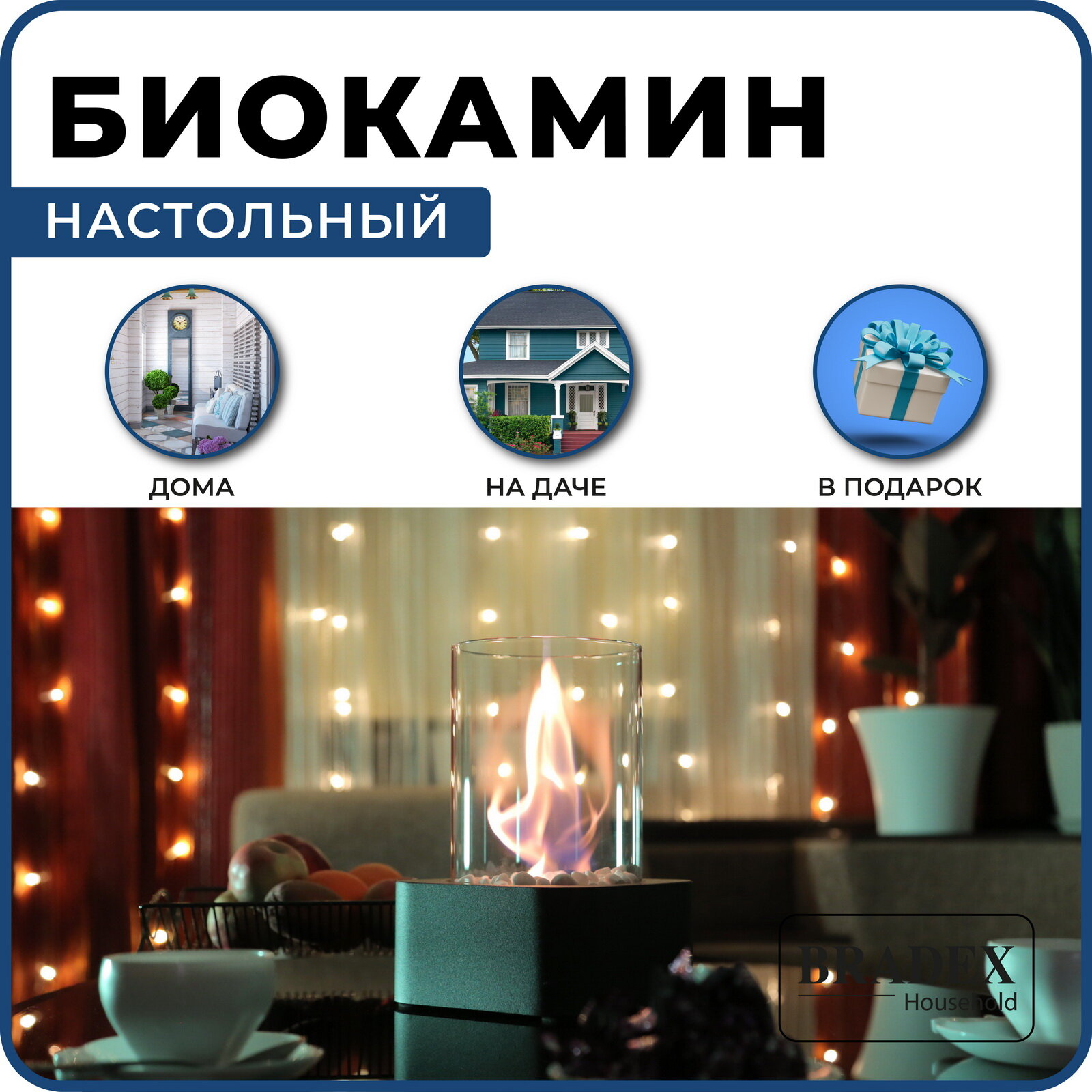 Биокамин настольный для дома BRADEX "SQUARE", био камин декоративный со стеклянной колбой интересное: