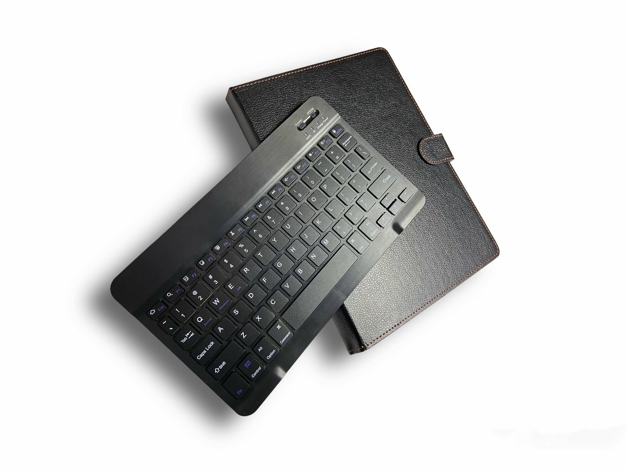 Купить Чехол-клавиатура MyPads для планшетов с диагональю 9.6/ 9.7/ 10.1/ 10.2/ 10.5/ 10.8 дюйма съёмная беспроводная Bluetooth в комплекте c кожаным че...