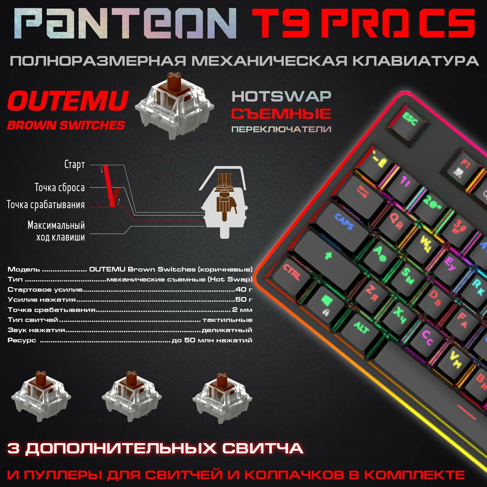 Ниже Вы можете прочитать отзывы на Механическая игровая клавиатура PANTEON T9 PRO CS(RGB LED,OUTEMU Brown, HotSwap,104+4 кл.,USB) черная, ознакомится с подробными характеристиками, посмотреть интересные обзоры и фотографии на Механическая игровая клавиатура PANTEON T9 PRO CS(RGB LED,OUTEMU Brown, HotSwap,104+4 кл.,USB) черная.