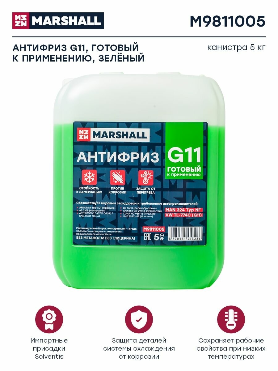 Антифриз G11, Концентрат 11, Зеленый, Канистра 5 Кг. MARSHALL арт. M9821005