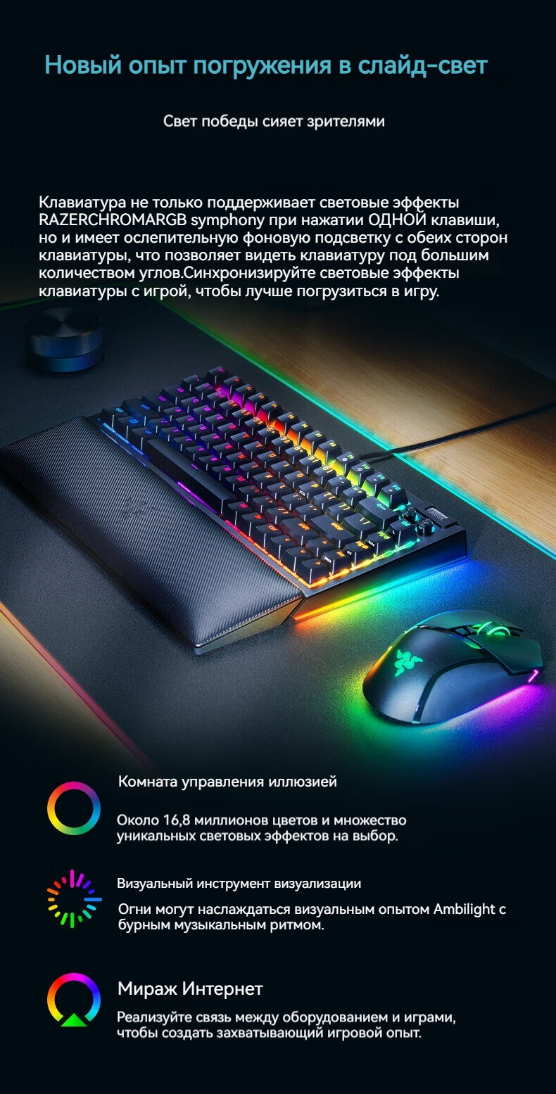 Из нее можно сделать конфетку на любой вкус и месяц, докупить разных свитчей и экспериментировать, спасибо рейзеру за хотсвап, а также, за спойлер к моему пк который дает +100 к фпс (подставка под запястье оказалась неудобной, что и ожидалось, либо к ней надо очень долго привыкать, она мягкая, приятная, карбоновая, но по габаритам вместе с такой маленькой клавиатурой совсем неудобно, при том что я юзаю клавиатуру на полностью поднятых ножках, пальцы все равно скосило вниз под напряжение, если использовать подставку) |