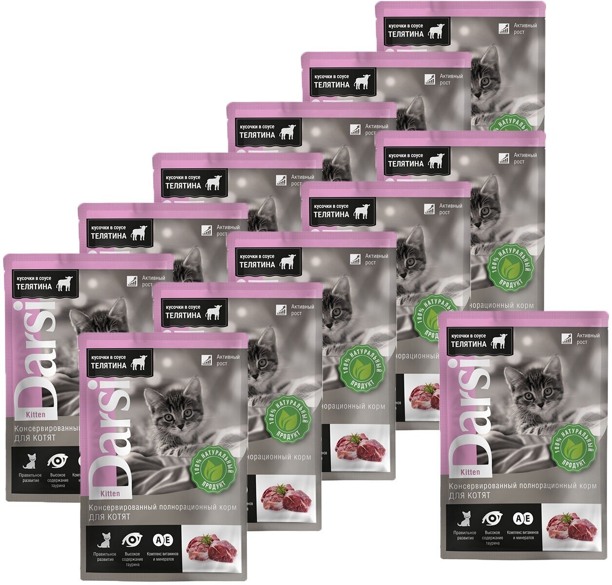 Влажный корм для котят Darsi Кусочки с телятиной в соусе 12*85 г (12 шт.)