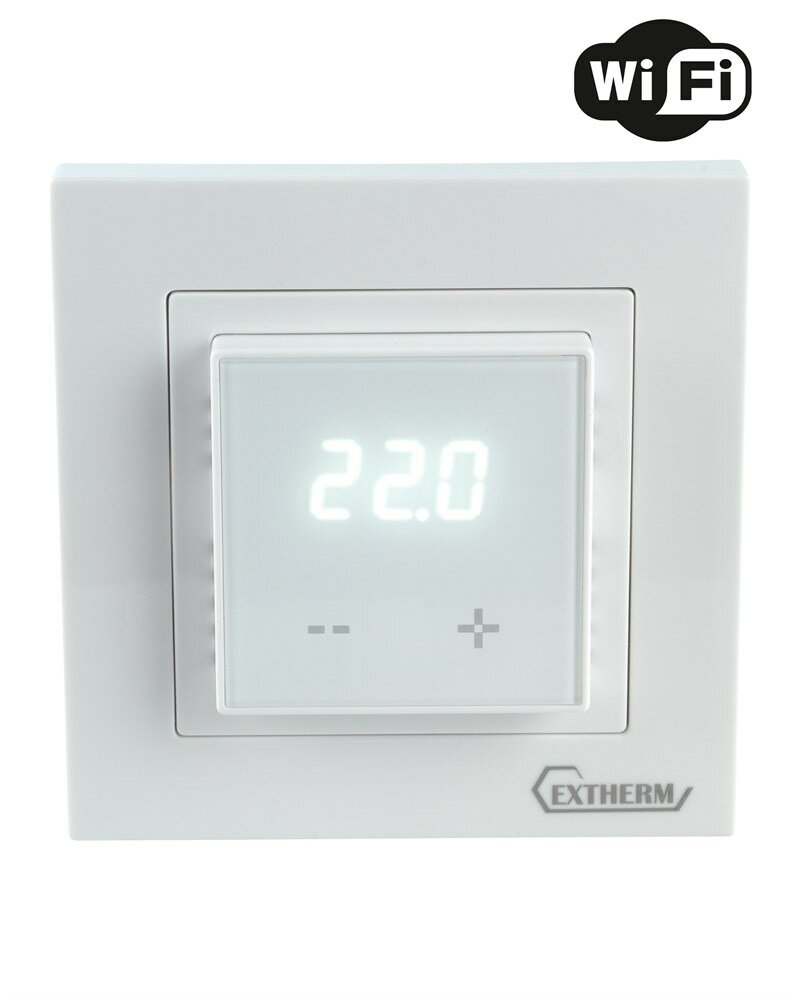 Термостат программируемый ET-44(w) с Wi-Fi 3.6кВт 16А для теплых полов датчик пола; датчик воздуха с возможн. установкой в рамку Legrand Valena и Schneider Unica бел. Extherm ET-44(w)
