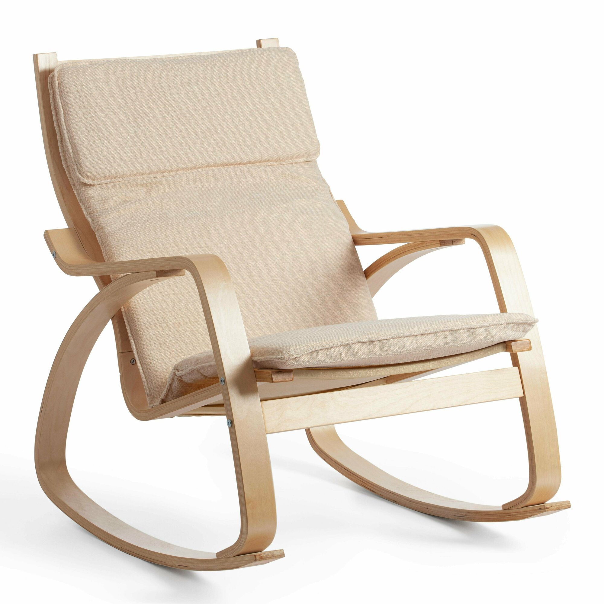 Кресло-качалка TETCHAIR mod. AX3005, дерево береза, ткань: полиэстер/хлопок, 61х94,5х104 см, дерево: натуральный #1/ ткань светло-серая 2