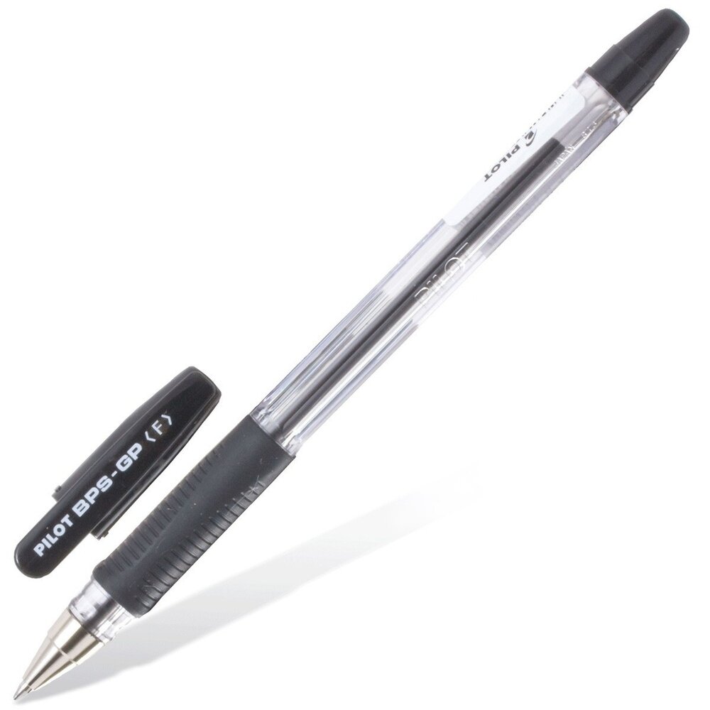 Ручка шариковая масляная с грипом PILOT "BPS-GP", черная, корпус прозрачный, узел 0,7 мм, линия письма 0,21 мм, BPS-GP-F, BРS-GP-F