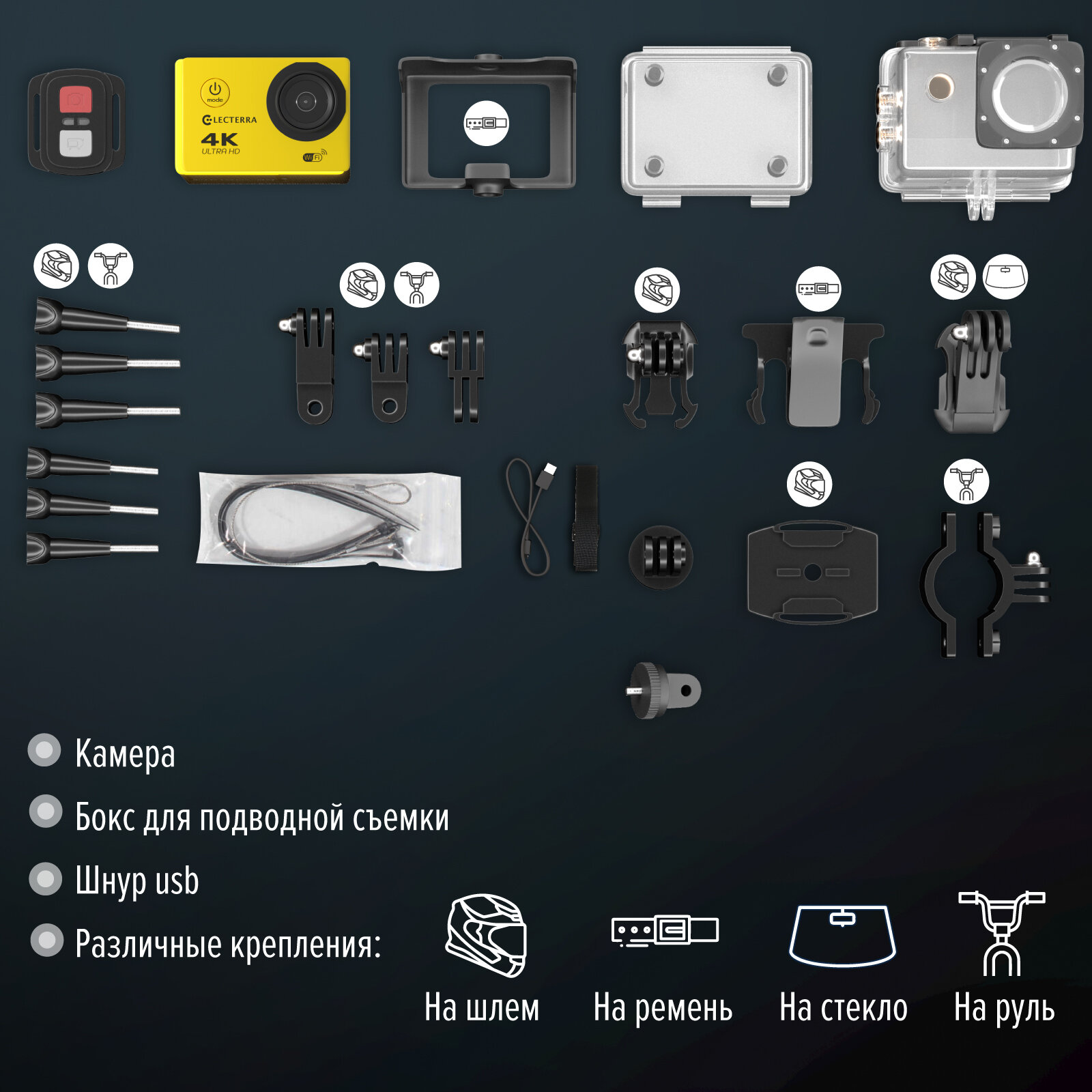 Экшн-камера Electerra 4К 1080p Ultra HD. Подводная экшен камера желтая интересное: