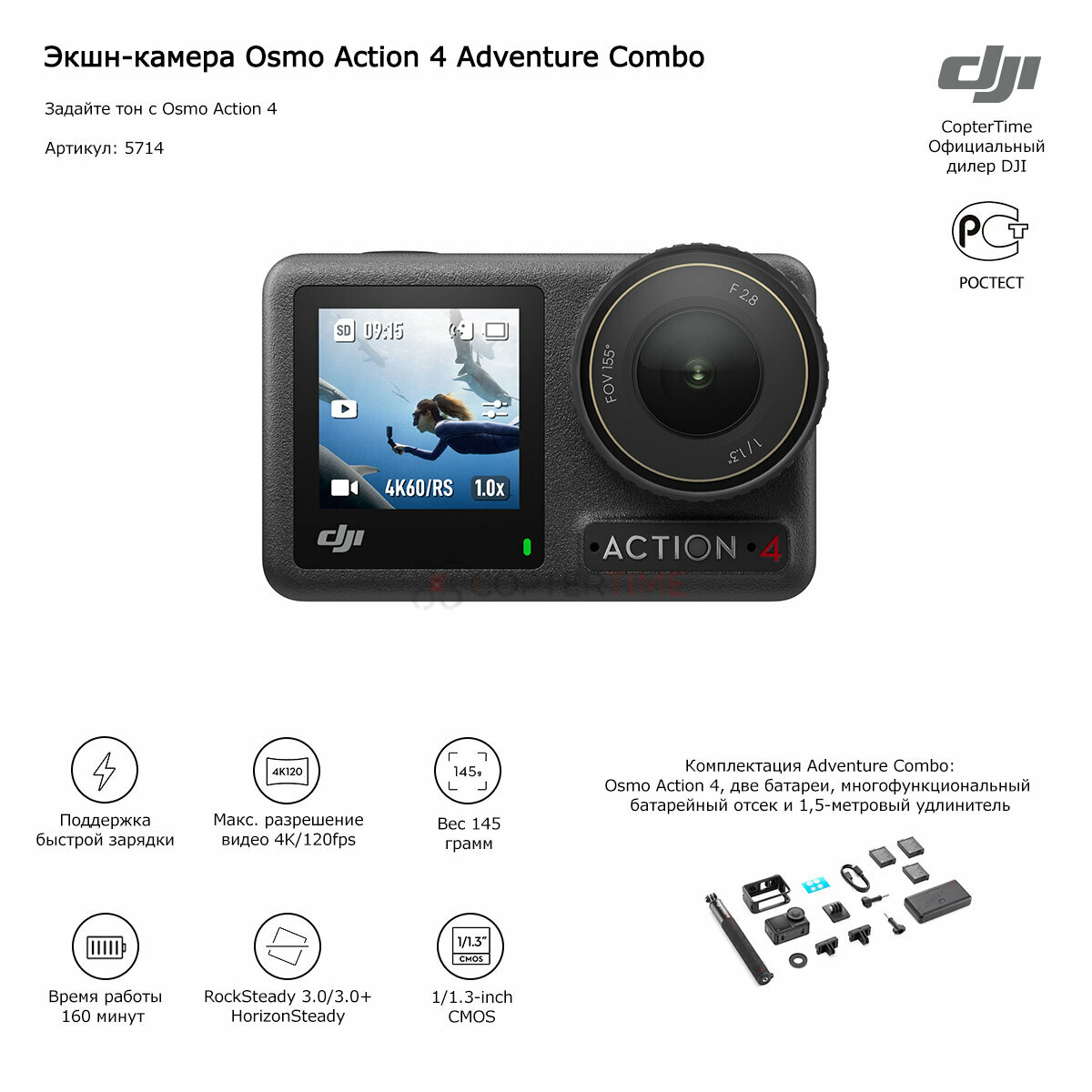 Экшн-камера DJI Osmo Action 4 Adventure Combo интересное: