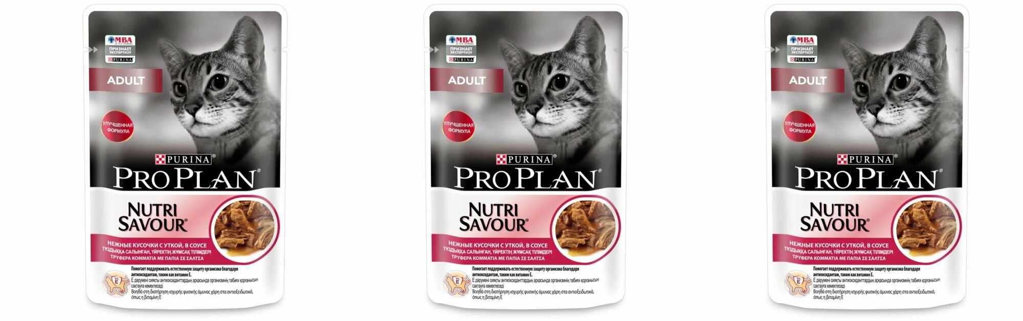 Купить Pro Plan влажный корм для взрослых кошек, нежные кусочки с уткой, в соусе, 85 г, 3 шт