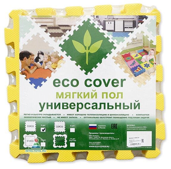 Модульный мягкий пол-пазл универсальный Eco Cover (Эко Ковер), 33х33 см (желтый)