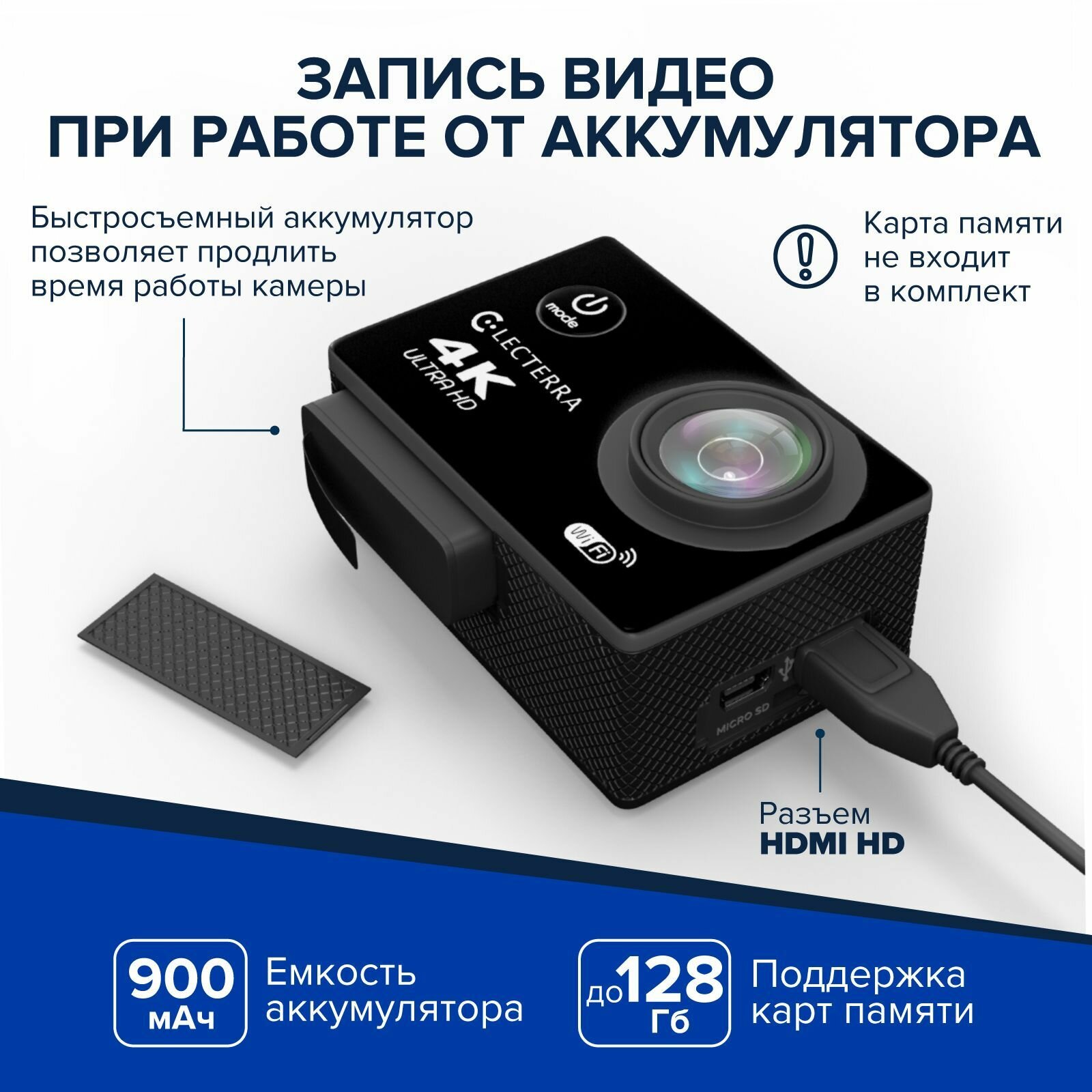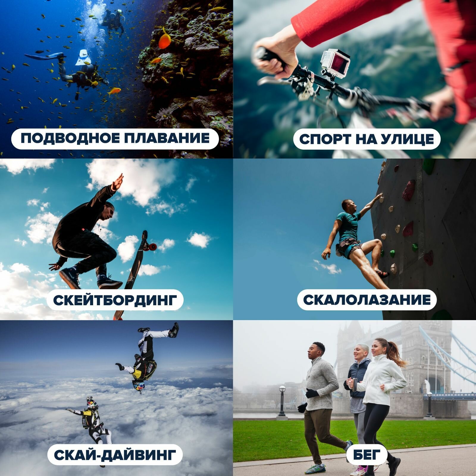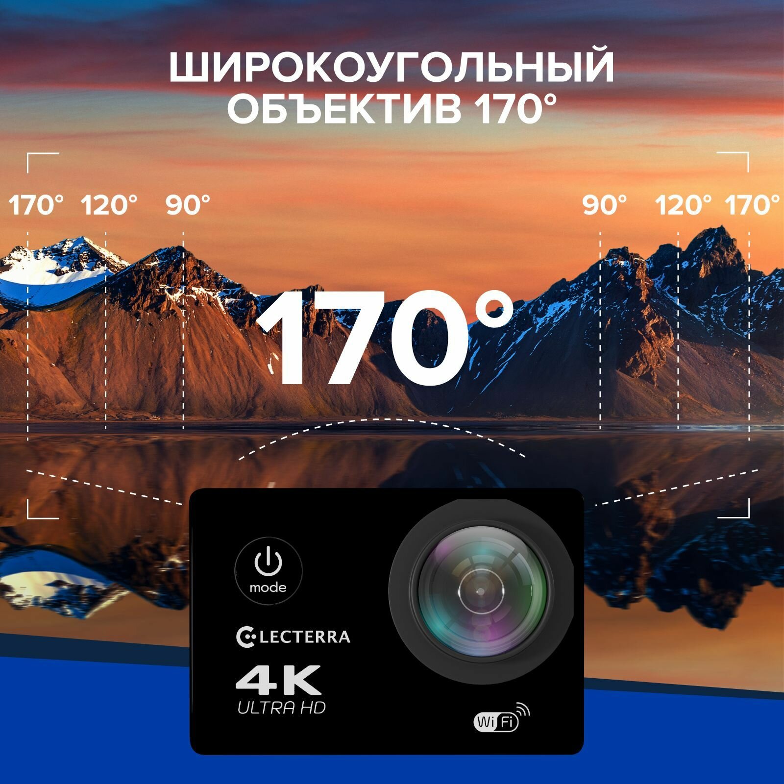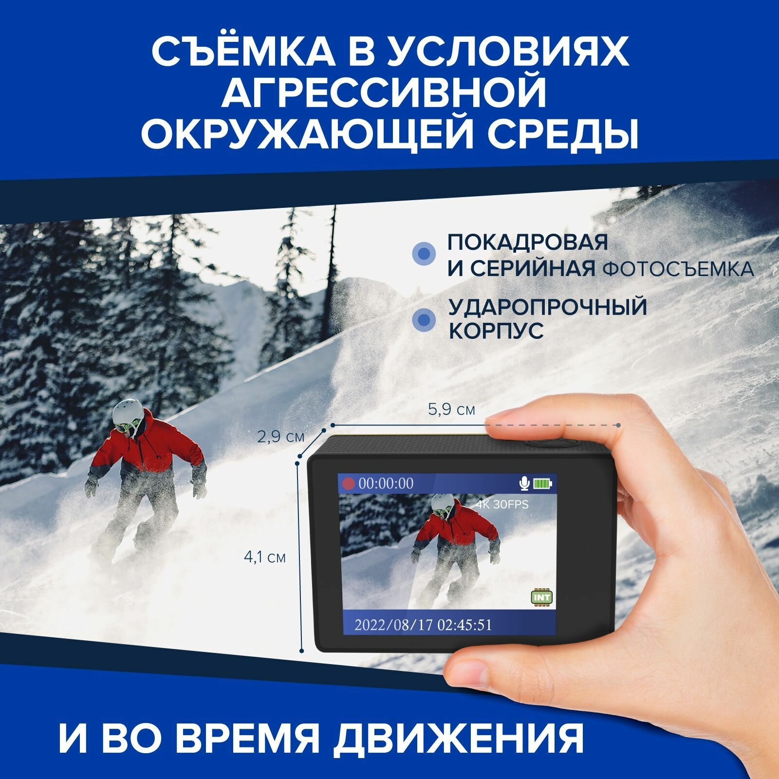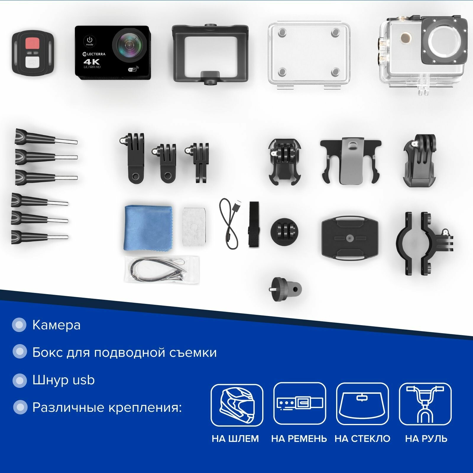 Экшн-камера Electerra. Водонепроницаемая экшн камера 4K с креплениями и защитным кейсом для дайвинга. интересное:
