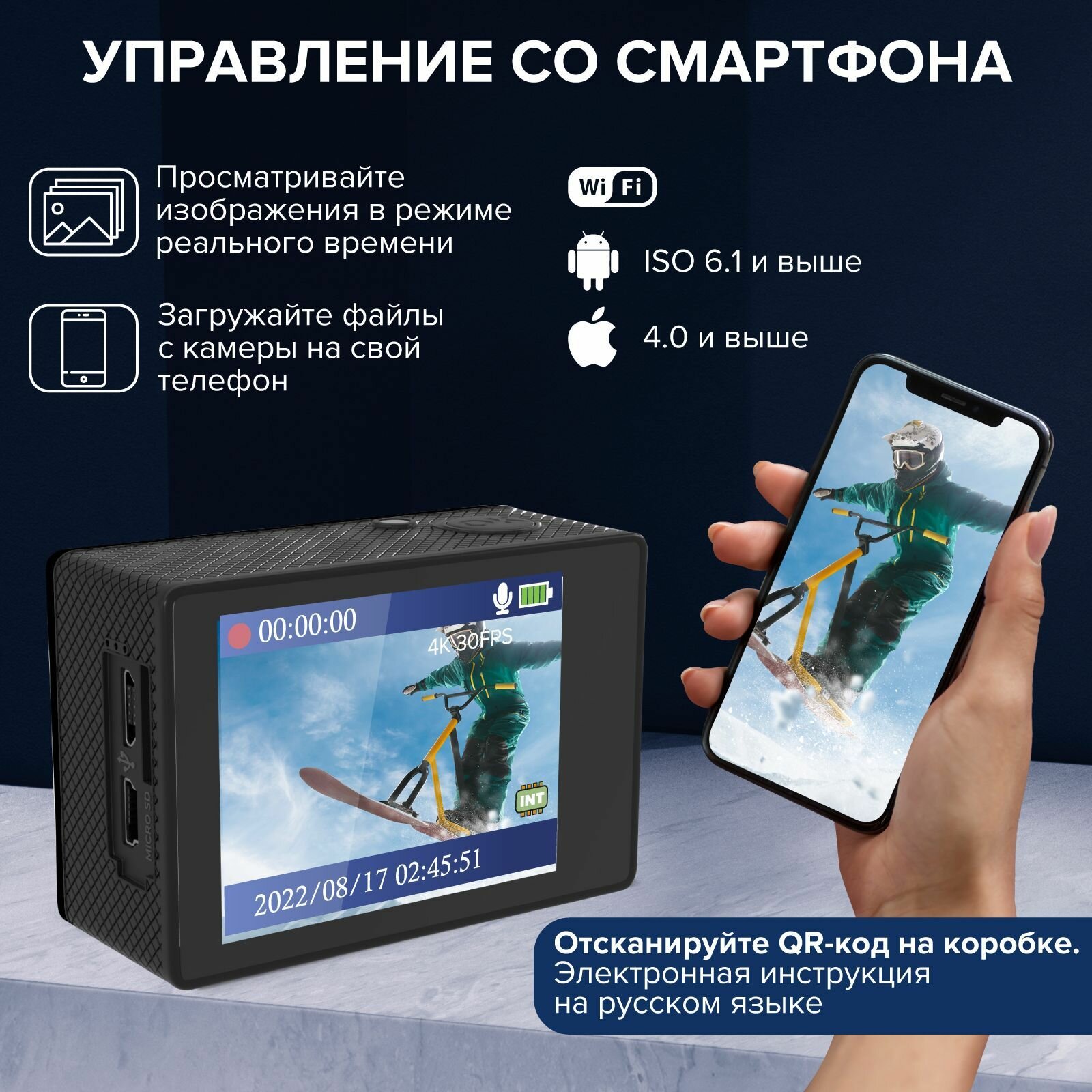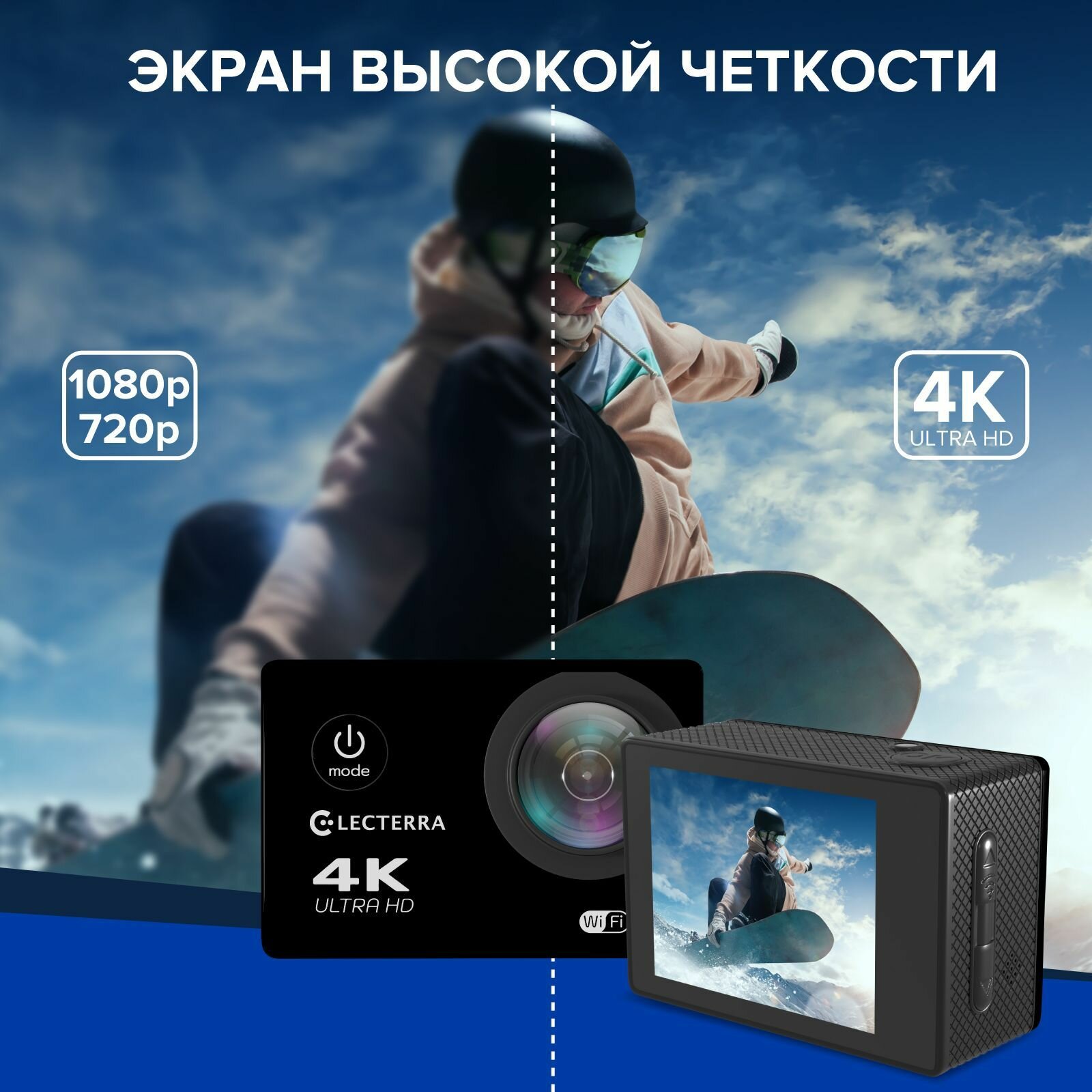 Купить Экшн-камера Electerra. Водонепроницаемая экшн камера 4K с креплениями и защитным кейсом для дайвинга.