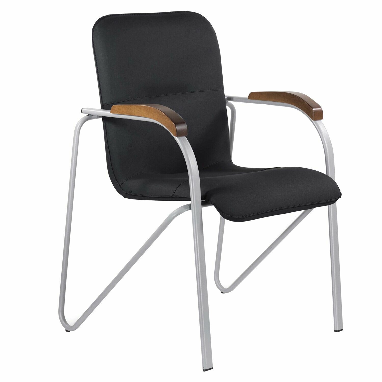 Компьютерное офисное кресло (стул) для приемных и переговорных Brabix Samba Cf-104, серый, орех (D-8), к/з черный, собрано, 532759