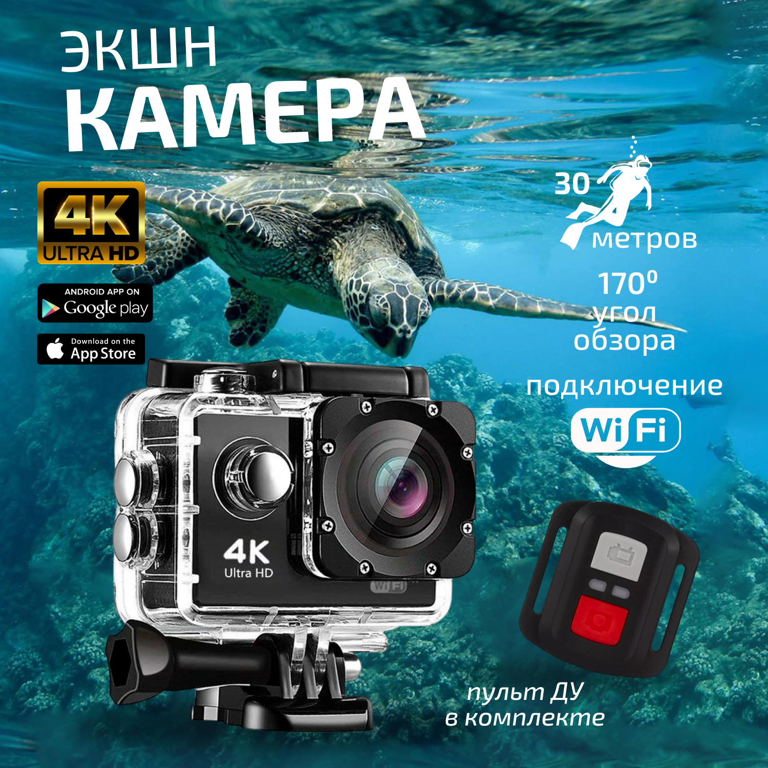 Купить Подводная экшн камера 4k с пультом водонепроницаемая