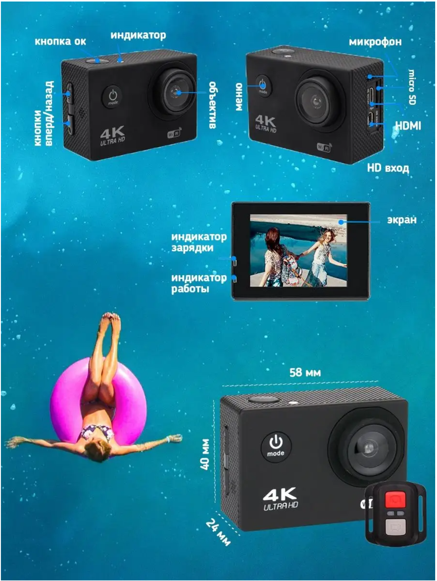 Подводная экшн камера 4k с пультом водонепроницаемая интересное: