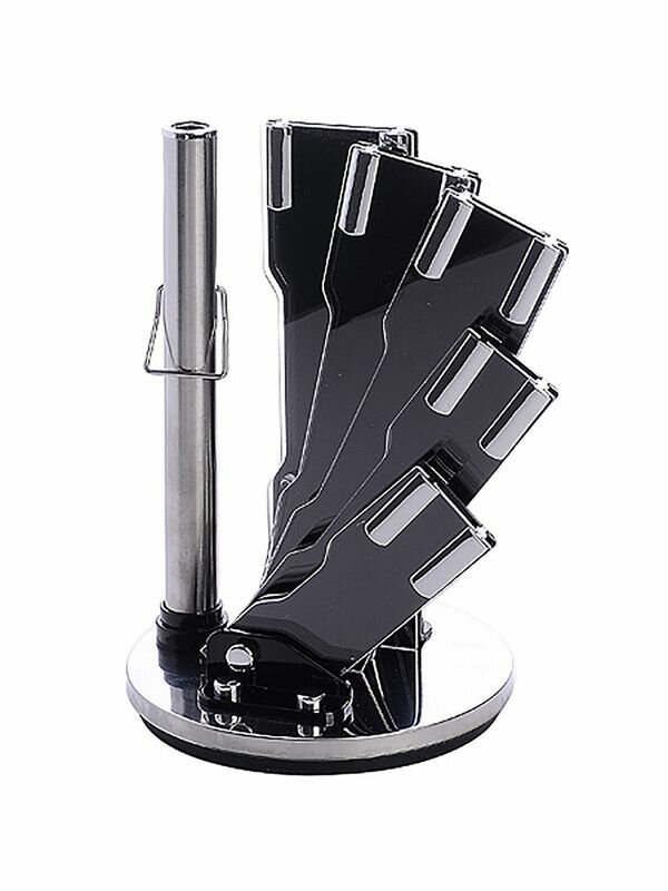 | Комплектация | хлебный нож: 33 см (лезвие 20 см); поварской нож: 33 см (лезвие 20 см); разделочный нож: 33 см (лезвие 20 см); универсальный нож: 23 см (лезвие 11 см); нож для очистки: 20 см (лезвие 8,5 см); длина ножниц: 18 см; длина мусата: 30 см |