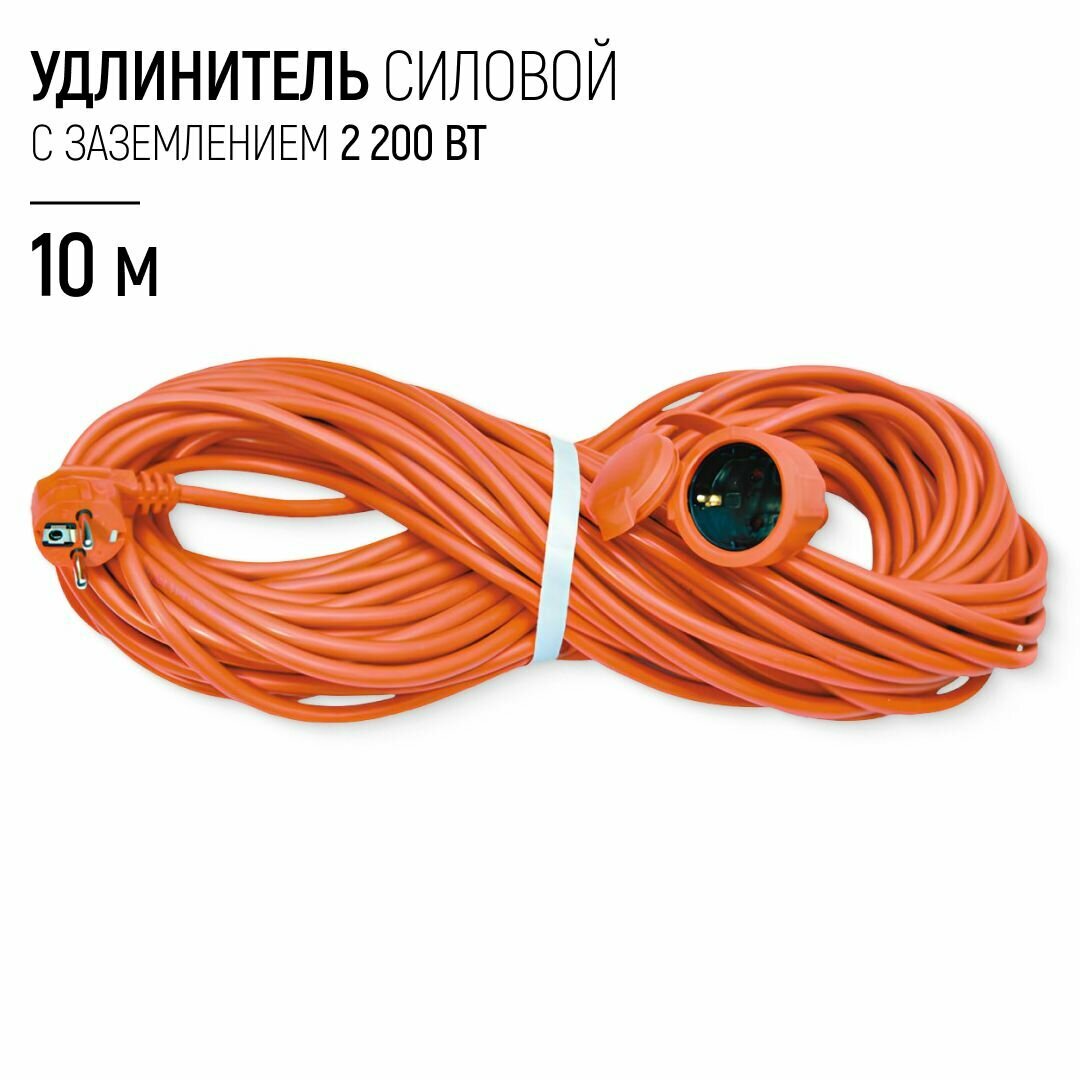 Универсал Удлинитель-шнур сил. 1 гнездо, ПВС 3х0,75, 2200Вт, 10А, с/з IP-54, 10м 9632008