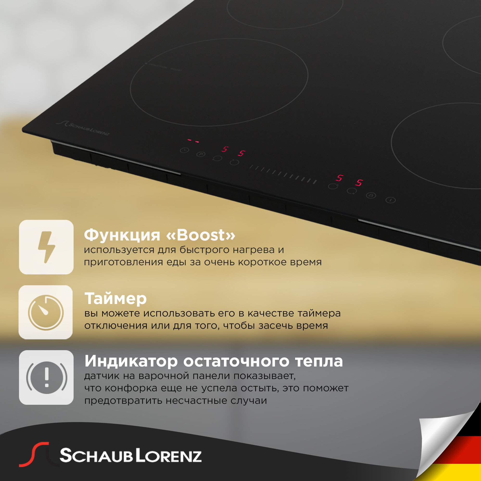 Индукционная варочная панель Schaub Lorenz SLK IY 61 S5, 60см, чёрный, слайдер, Booster интересное:
