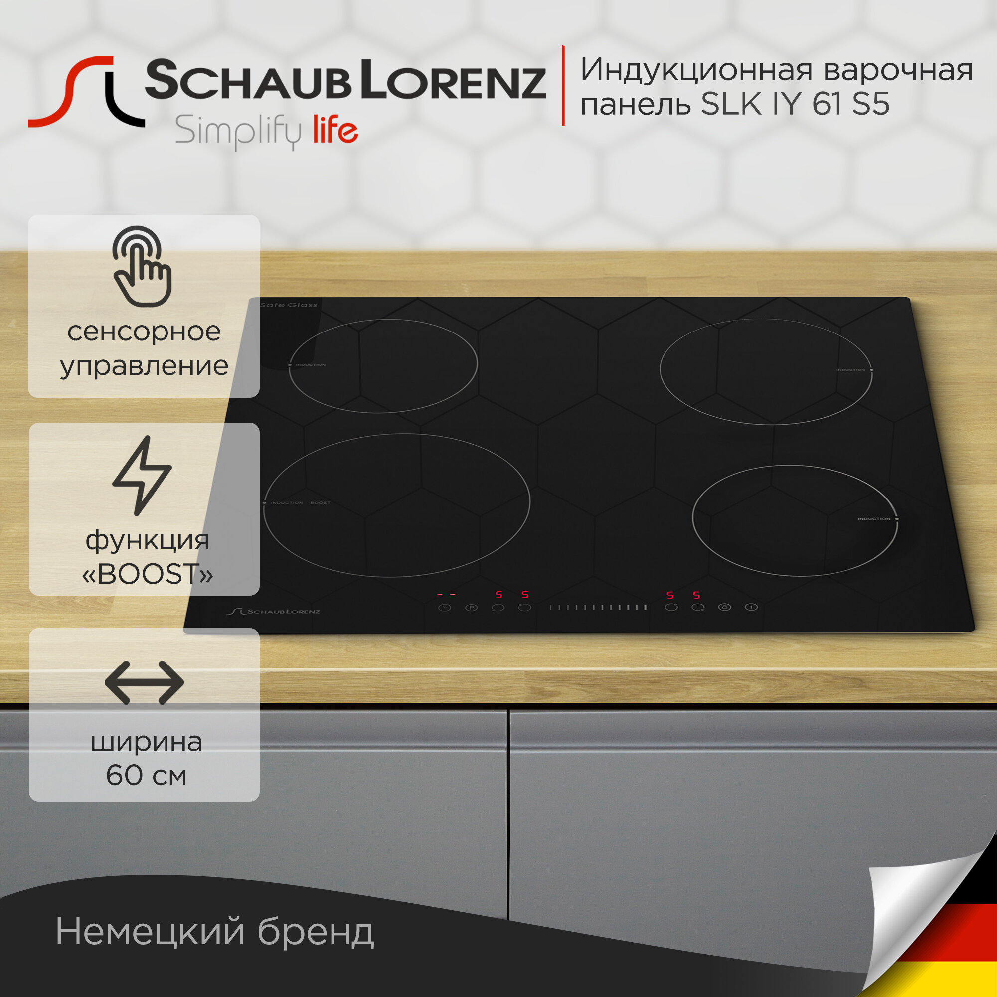 Индукционная встраиваемая варочная панель Schaub Lorenz SLK IY 61 S5, 60см, чёрный, стеклокерамика