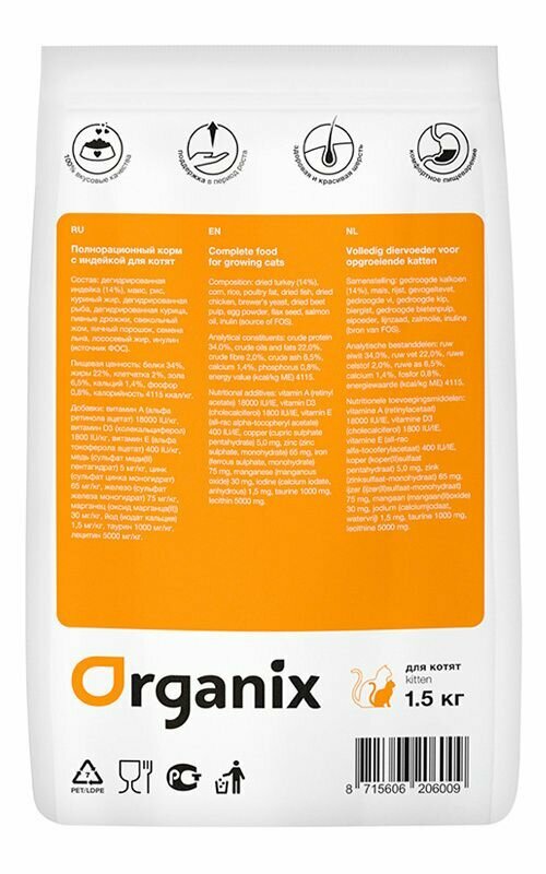 Корм Organix Kitten Turkey для котят, с индейкой, 1.5 кг