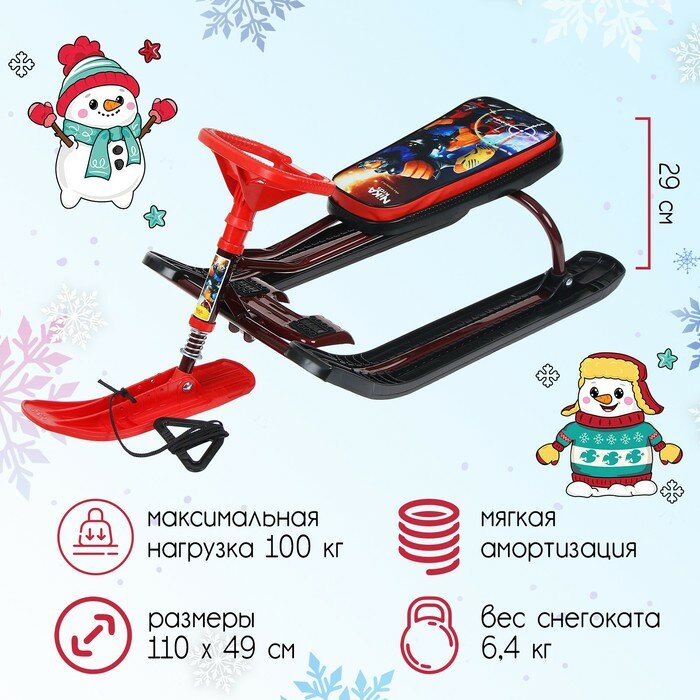 Снегокат детский Ника "Тимка Спорт 4 Робот", спинка, цвет красно-черный