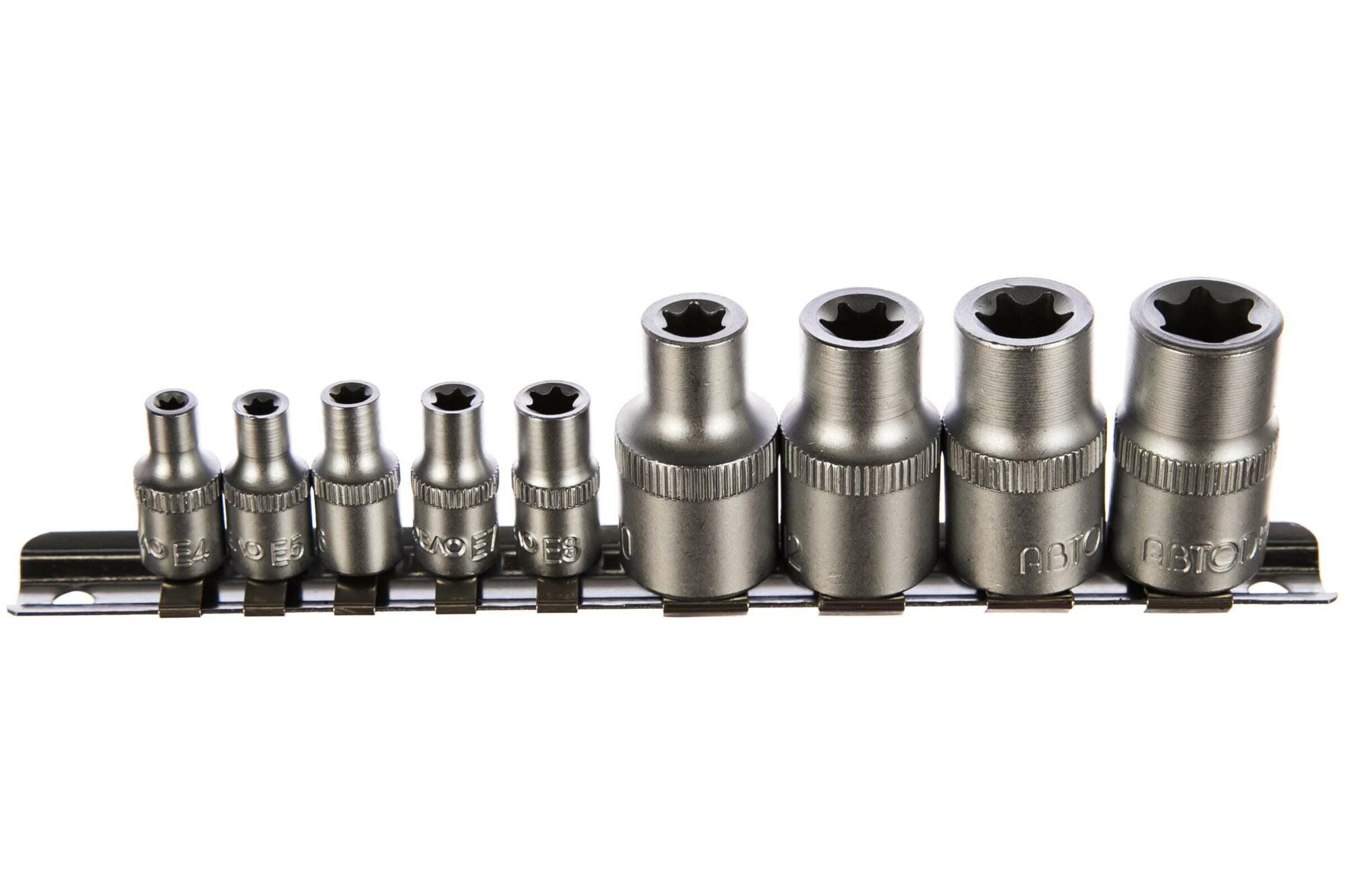 Купить Набор головок 1/2, 1/4 TORX (Е) 9 предм. (1/2 (Е10,12,14,16); 1/4 (Е4,5,6,7,