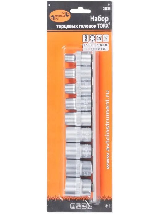 Набор головок TORX E АвтоDело 1/2 E10-E24 9 предметов 39839