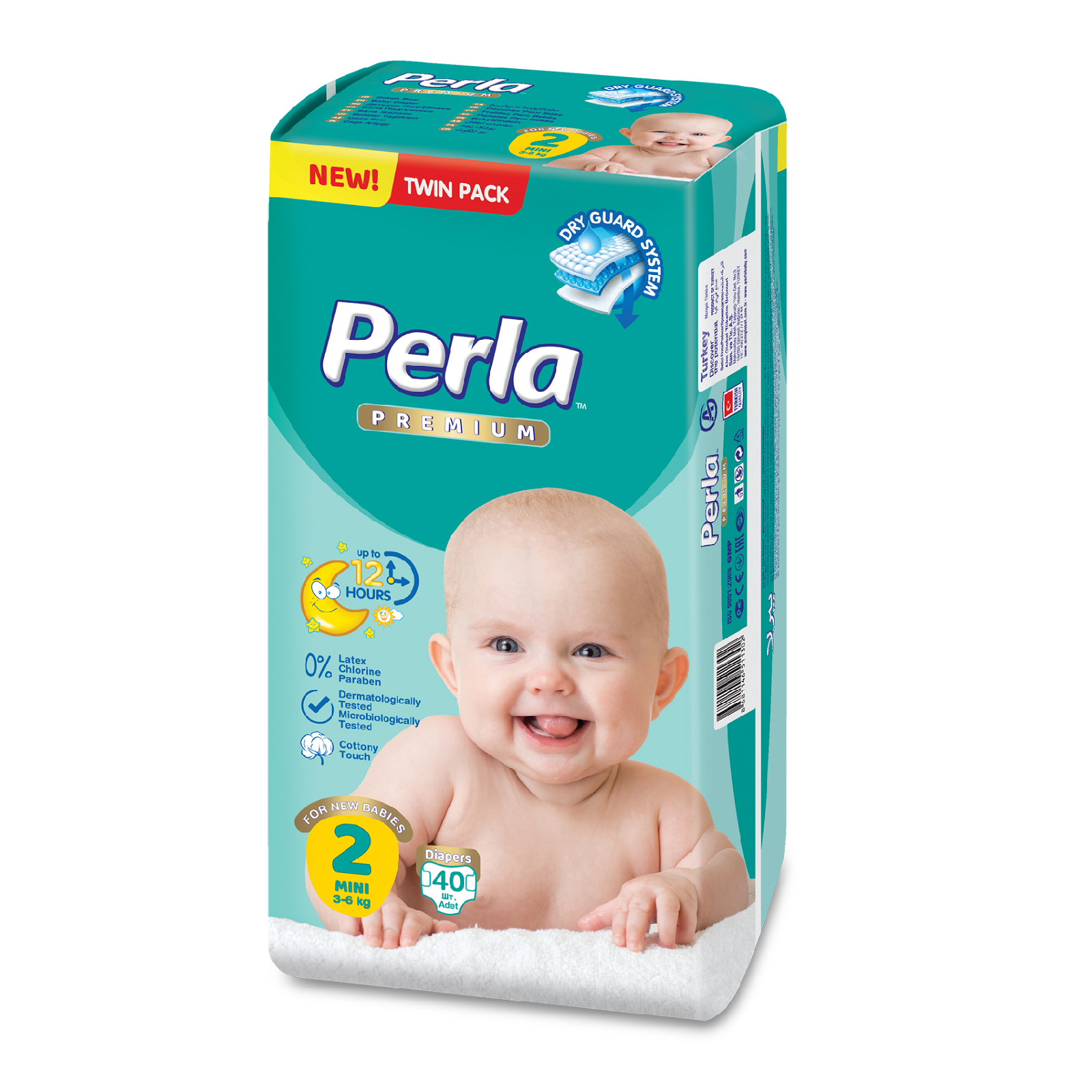Подгузники детские, для девочек и для мальчиков, памперсы ночные для детей, Perla Twin Mini для новорожденных 3-6 кг, 2 размер, 40 шт