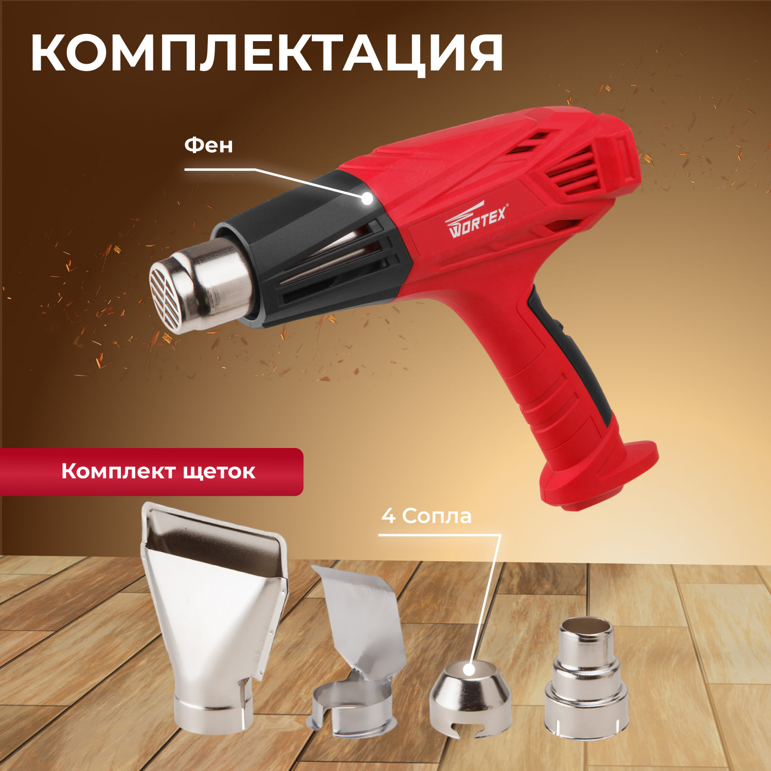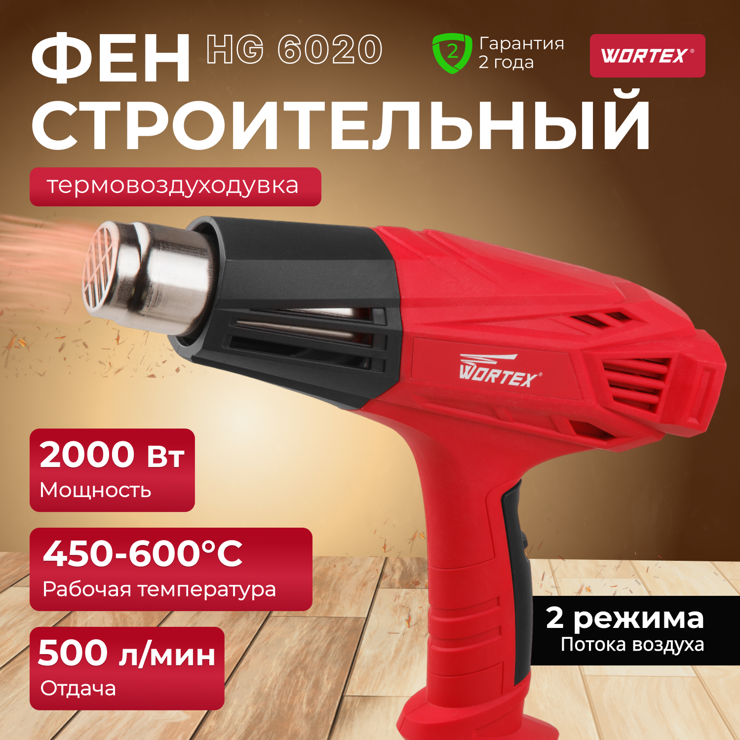 Фен строительный WORTEX HG 6020 2000Вт, 450-600°С, 250-500л, оснастка HG602000011 интересное: