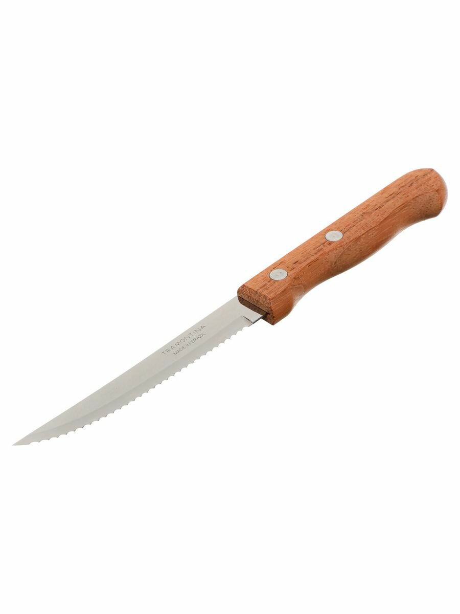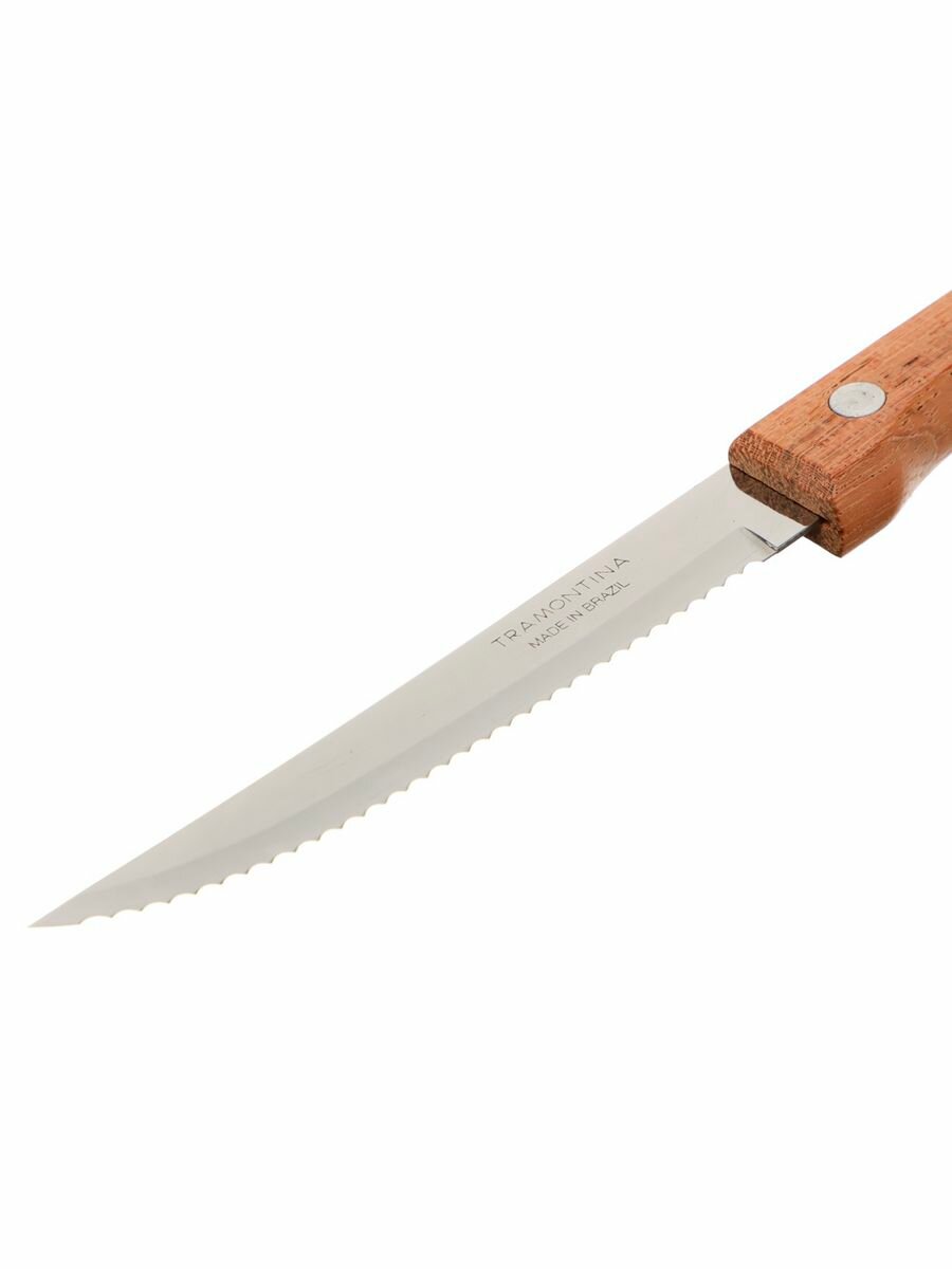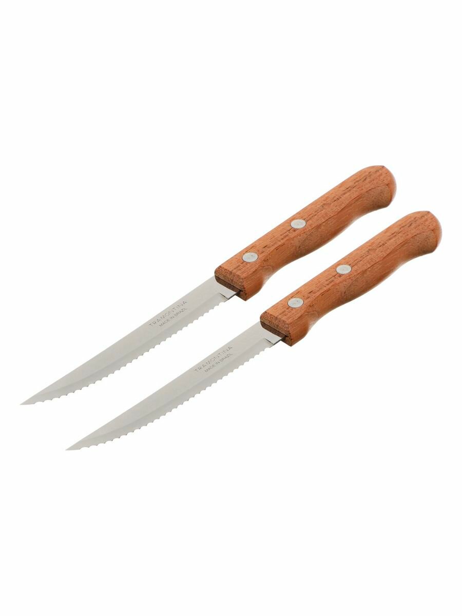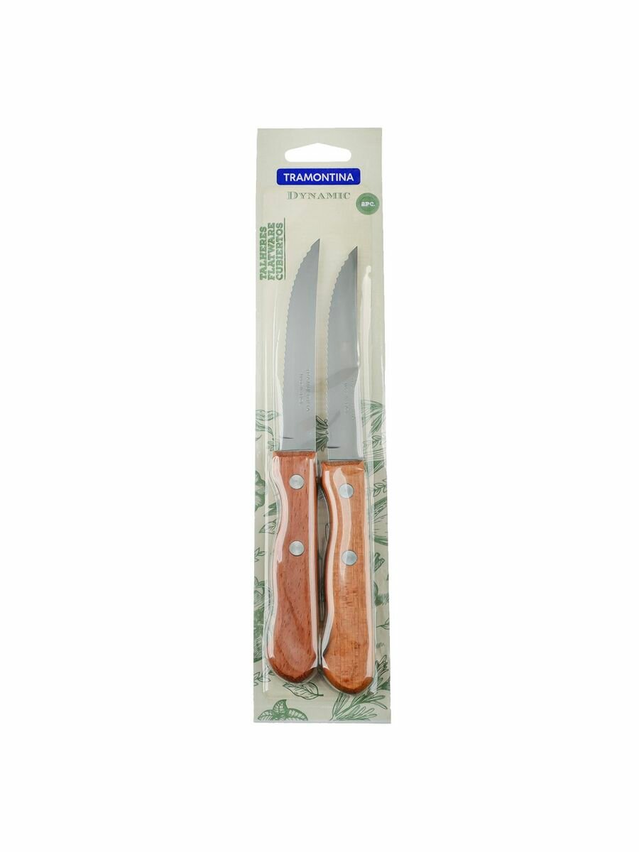 Нож кухонный для мяса, стейка с зубцами 10 см Tramontina Dynamic, деревянная ручка, 2 шт на блистере