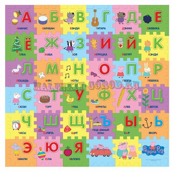 Купить Развивающий коврик-пазл Свинка Пеппа Pig Учим азбуку с Пеппой