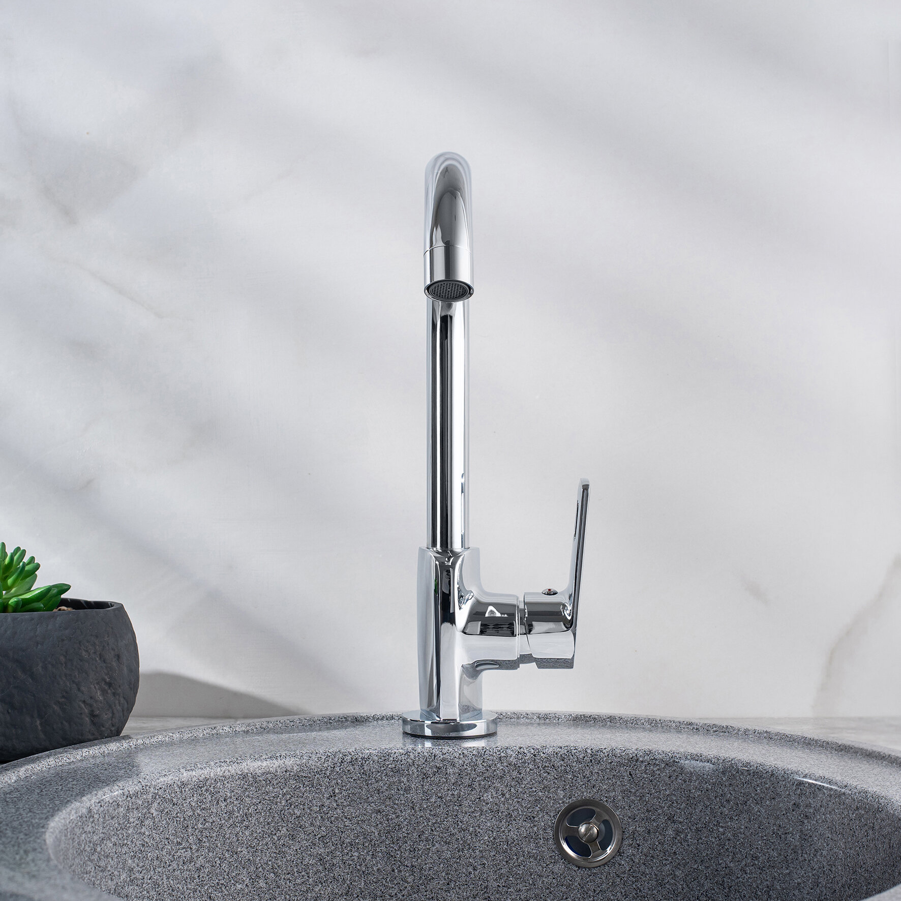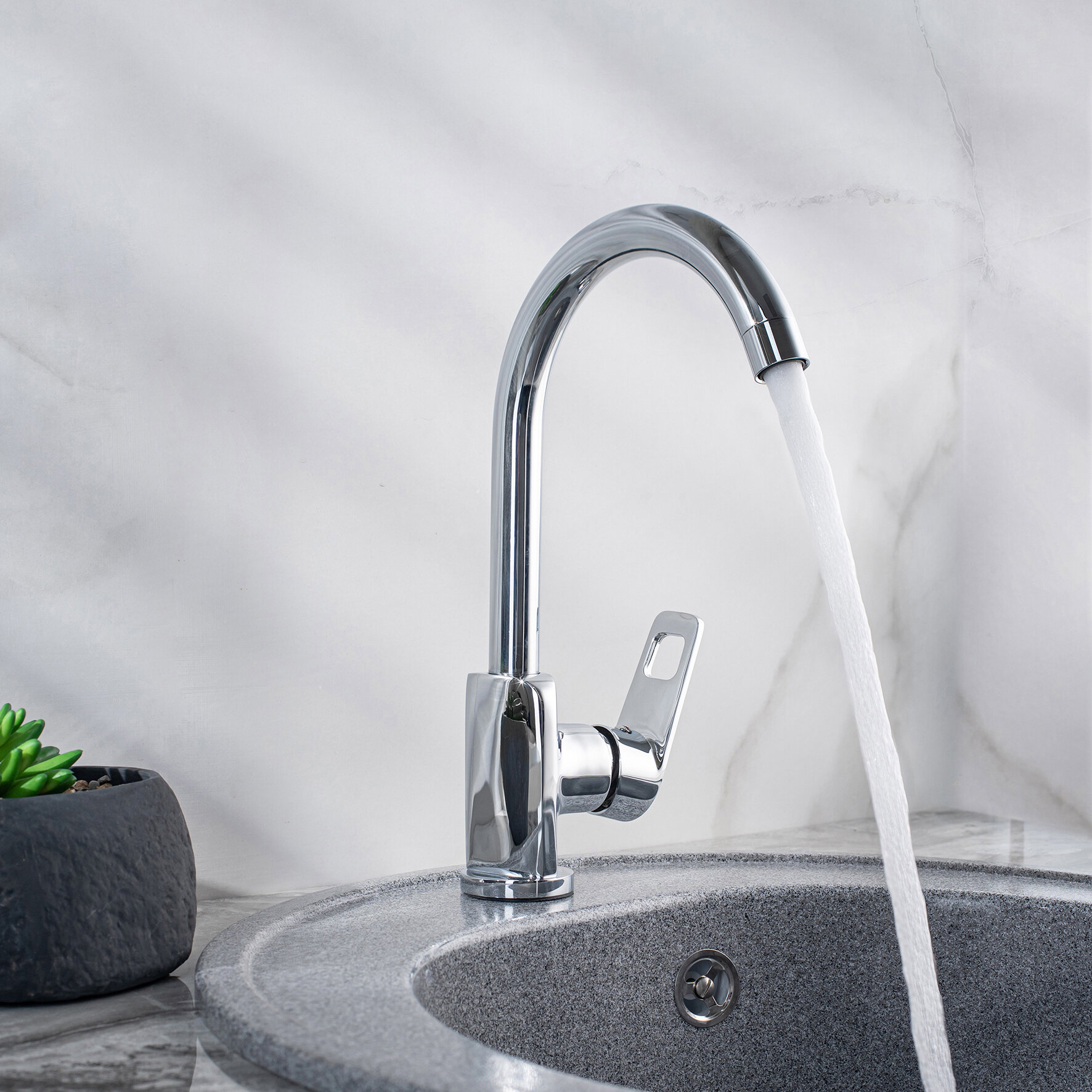 Смеситель для раковины с поворотным изливом на кухню и ванную / кухонный кран для мойки Ростовская Мануфактура Сантехники SL134-017F Хром