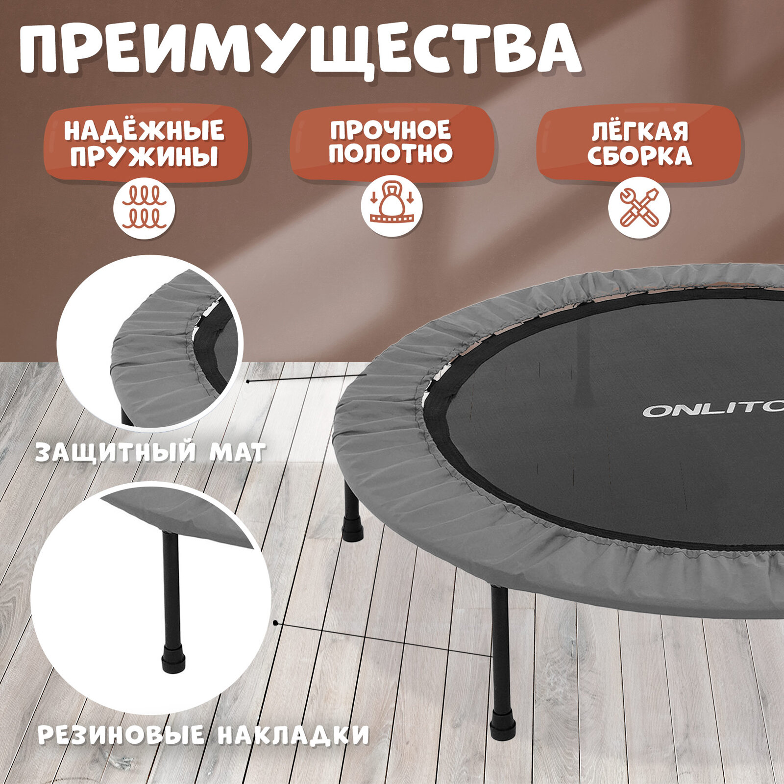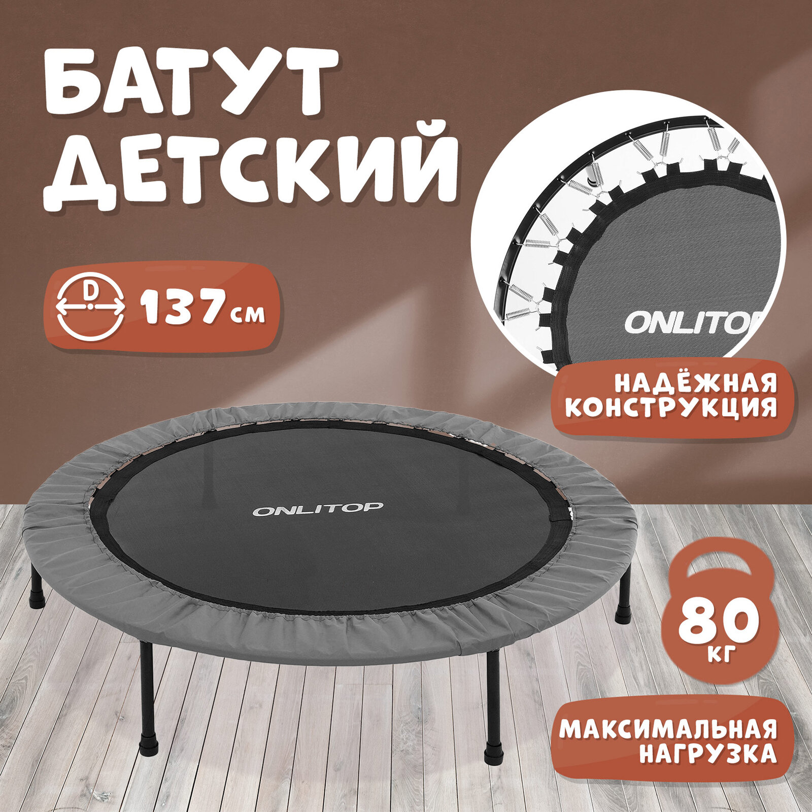ONLITOP Батут 54", d=137 см, цвет серый
