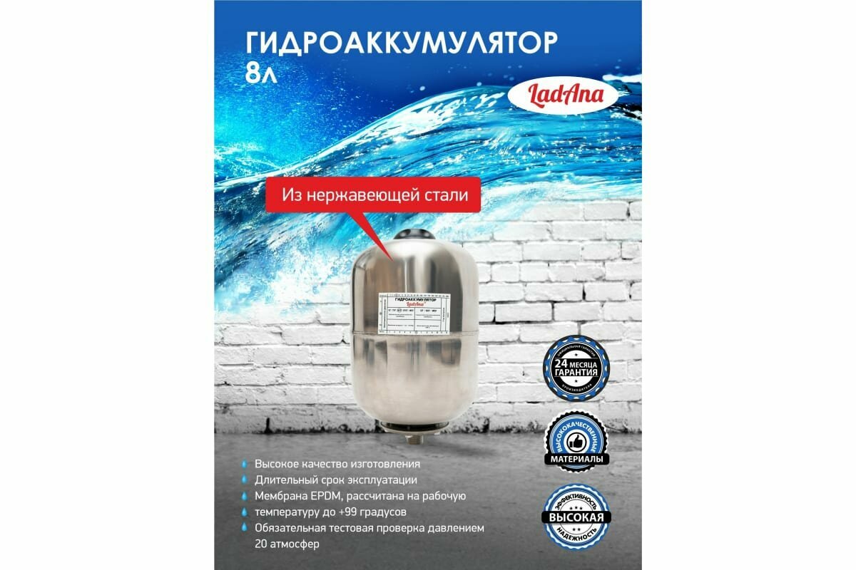 Гидроаккумулятор вертикальный из нержавеющей стали 8 л LadAna 110108001 интересное: