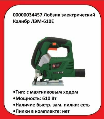 Лобзик Калибр ЛЭМ-610Е электрический, зеленый